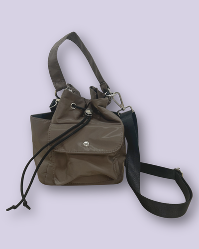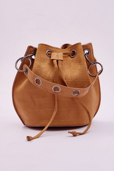 BUCKET BAG WITH EYELET STRAP - CAMEL