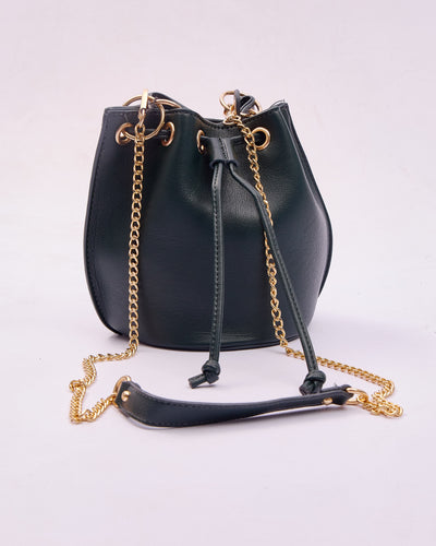 TEXT BUCKET BAG WITH CHAIN STRAP - GREEN