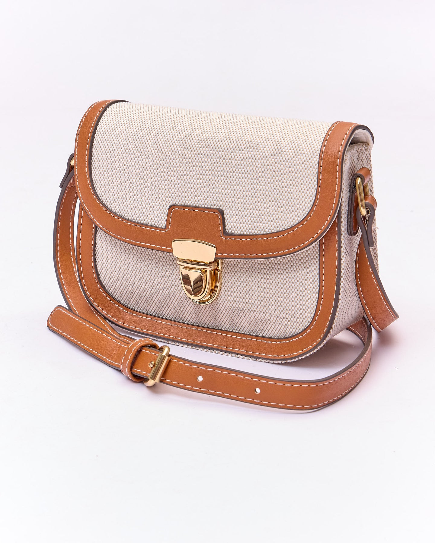 CROSS BODY WITH TAN CONTRAST BAG - BEIGE