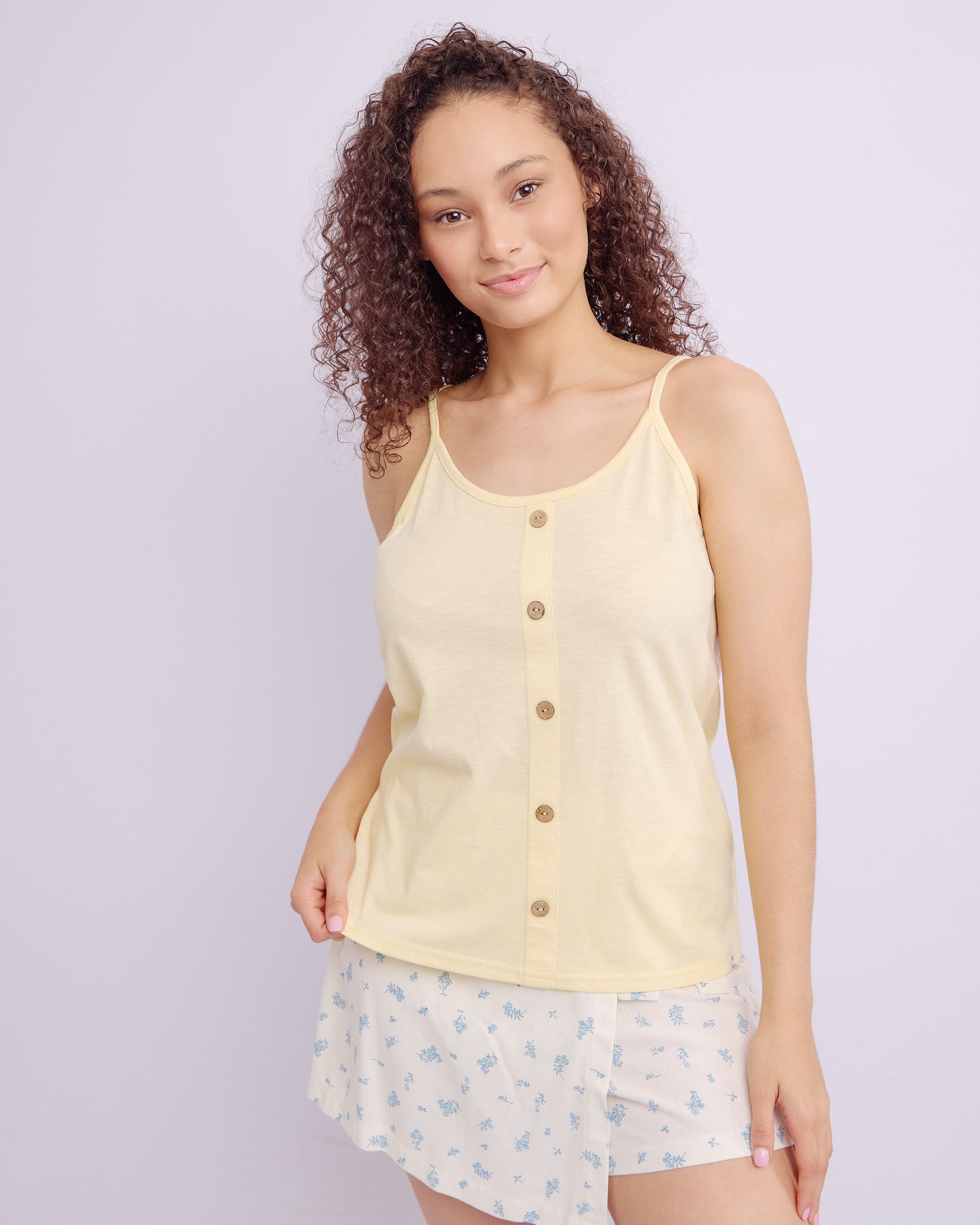 STRAPPY BUTTON-DOWN TOP - YELLOW
