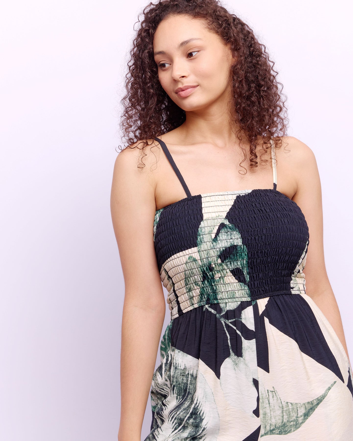 SMOCKED JUMPSUIT - CREAM/BLACK