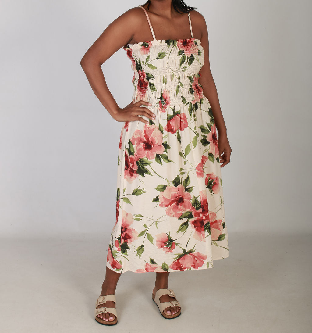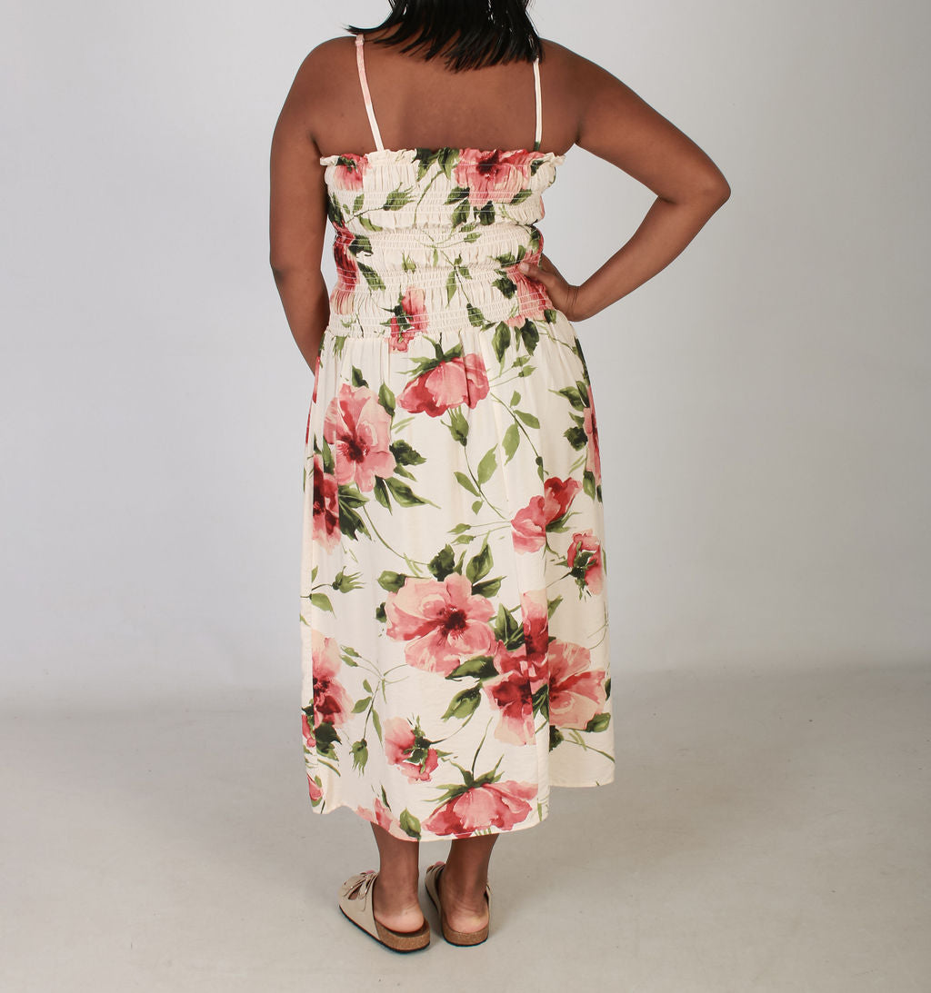 STAPPRY SMOCKED DRESS - CREAM FLORAL