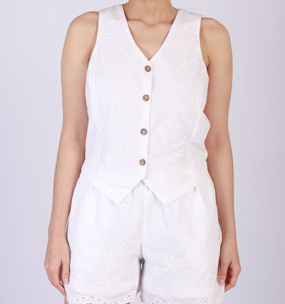 SLEEVE LESS ANGLAISE WAISTCOAT - WHITE