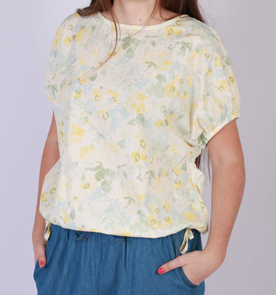 SLEEVE LESS LINEN BLOUSE - FLORAL
