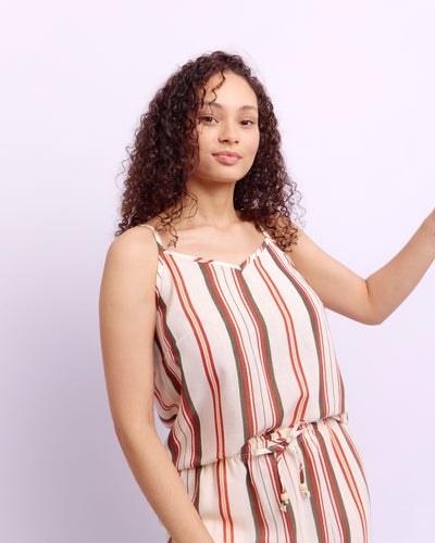 V-NECK STRAPPY LINEN TOP - STRIPE