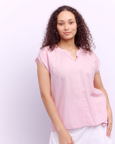 HENLEY RIB TOP - ROSE