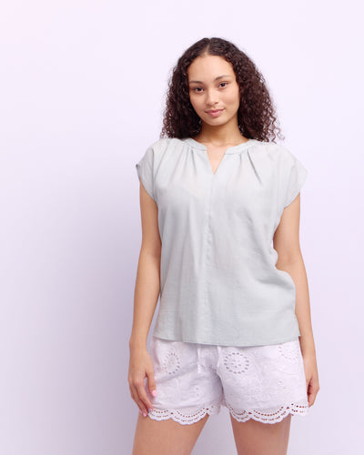 CAP SLEEVE LINEN BLOUSE - SAND