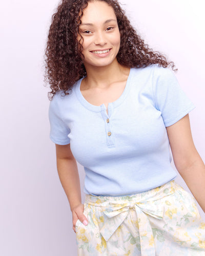 HENLEY RIB TOP - LIGHT BLUE