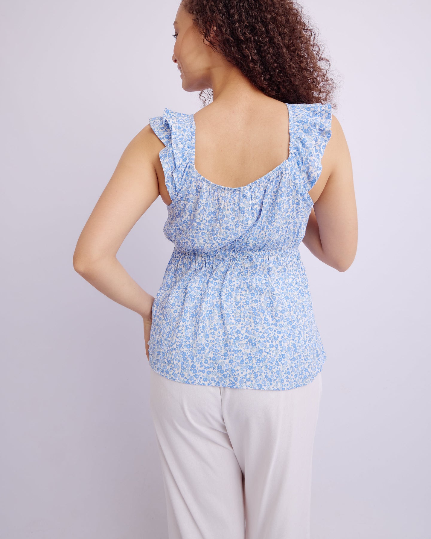FRILL CRINKLE DITSY TOP - BLUE