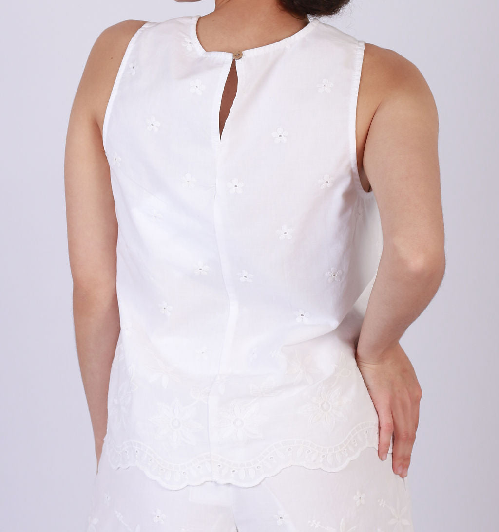 SLEEVE LESS ANGLAISE TOP - WHITE