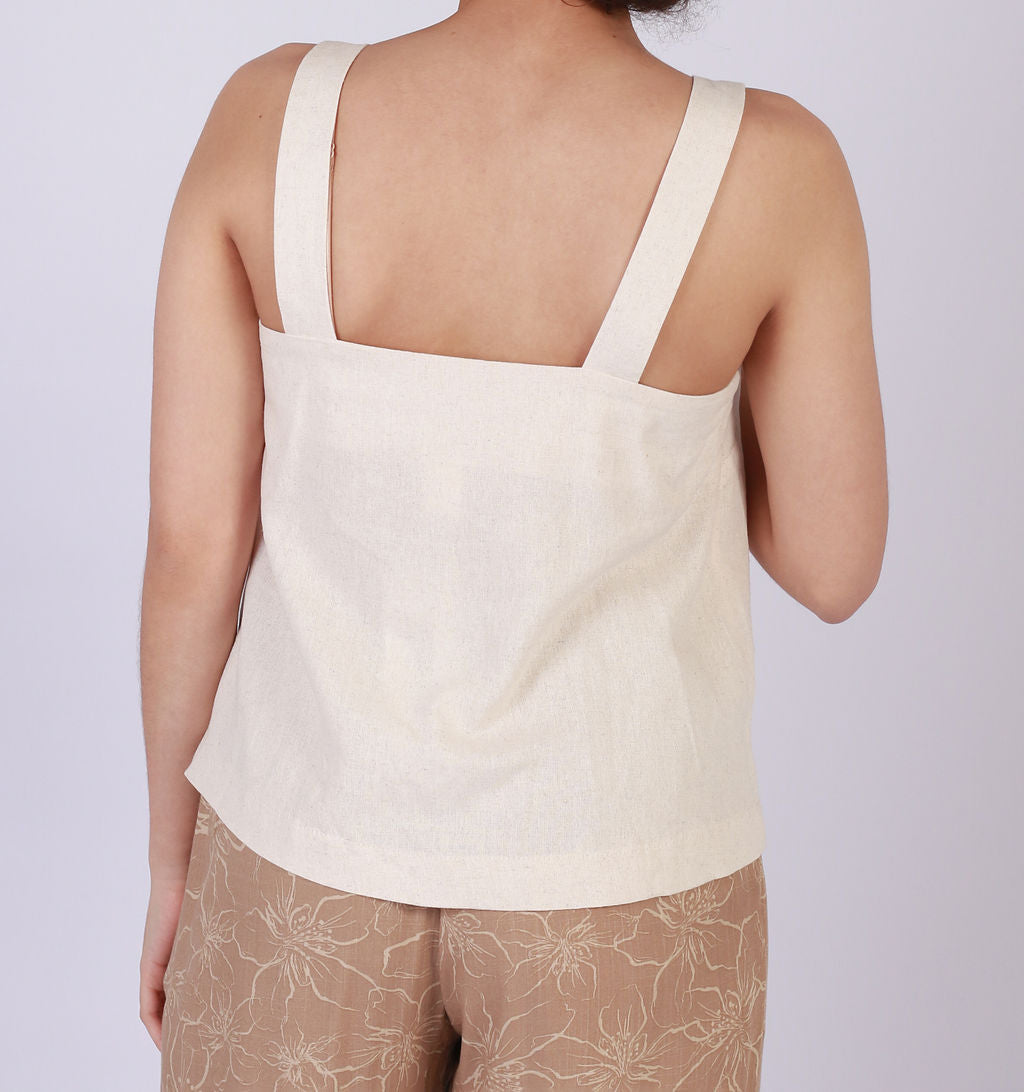 SQUARE NECK TANK LINEN TOP - OATMEAL