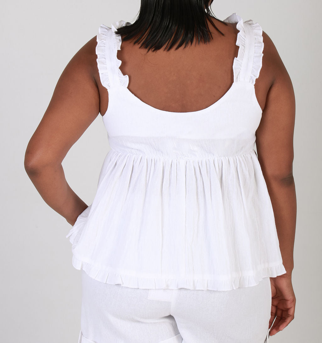 TIE FRONT SLEEVE LESS TOP - WHITE