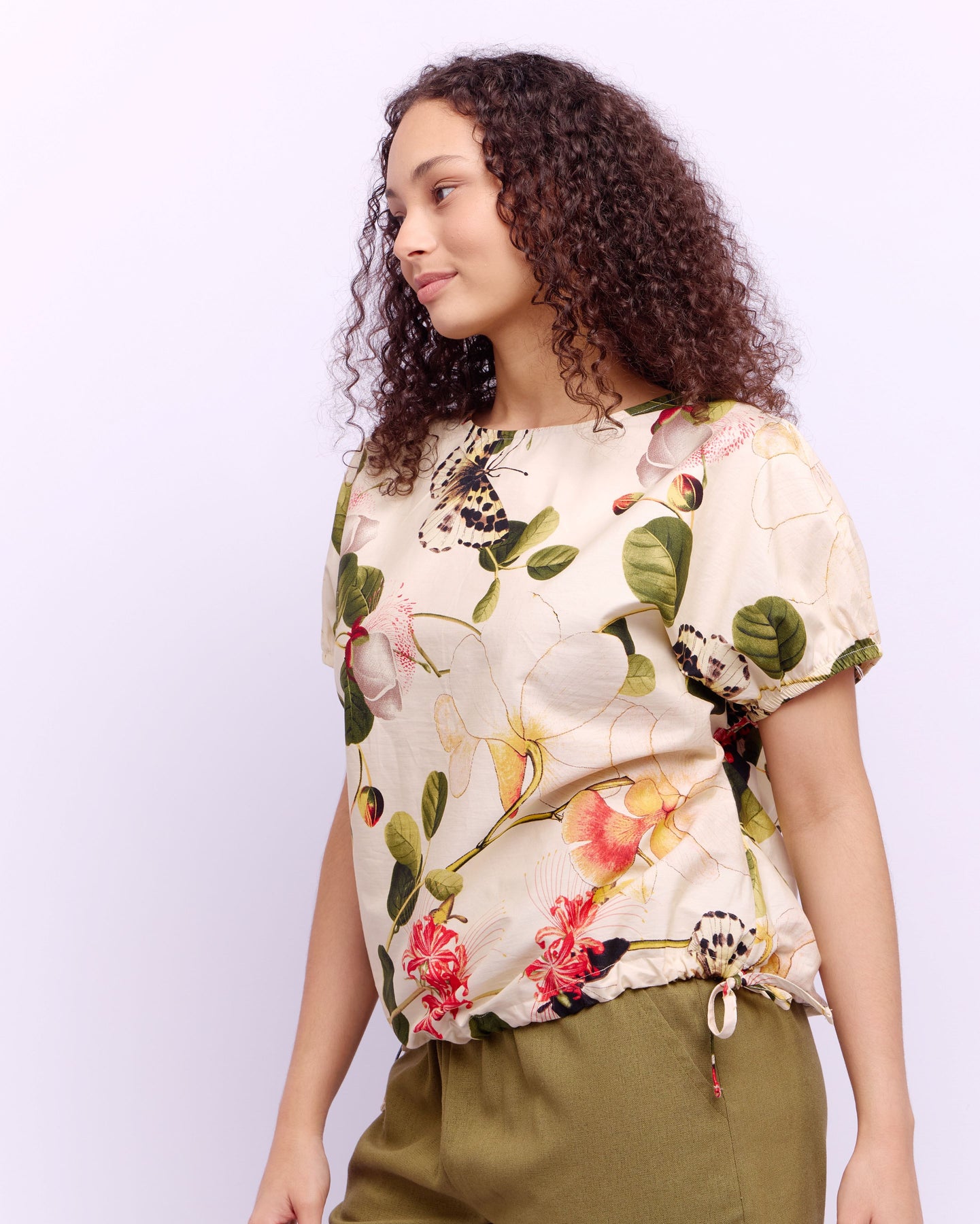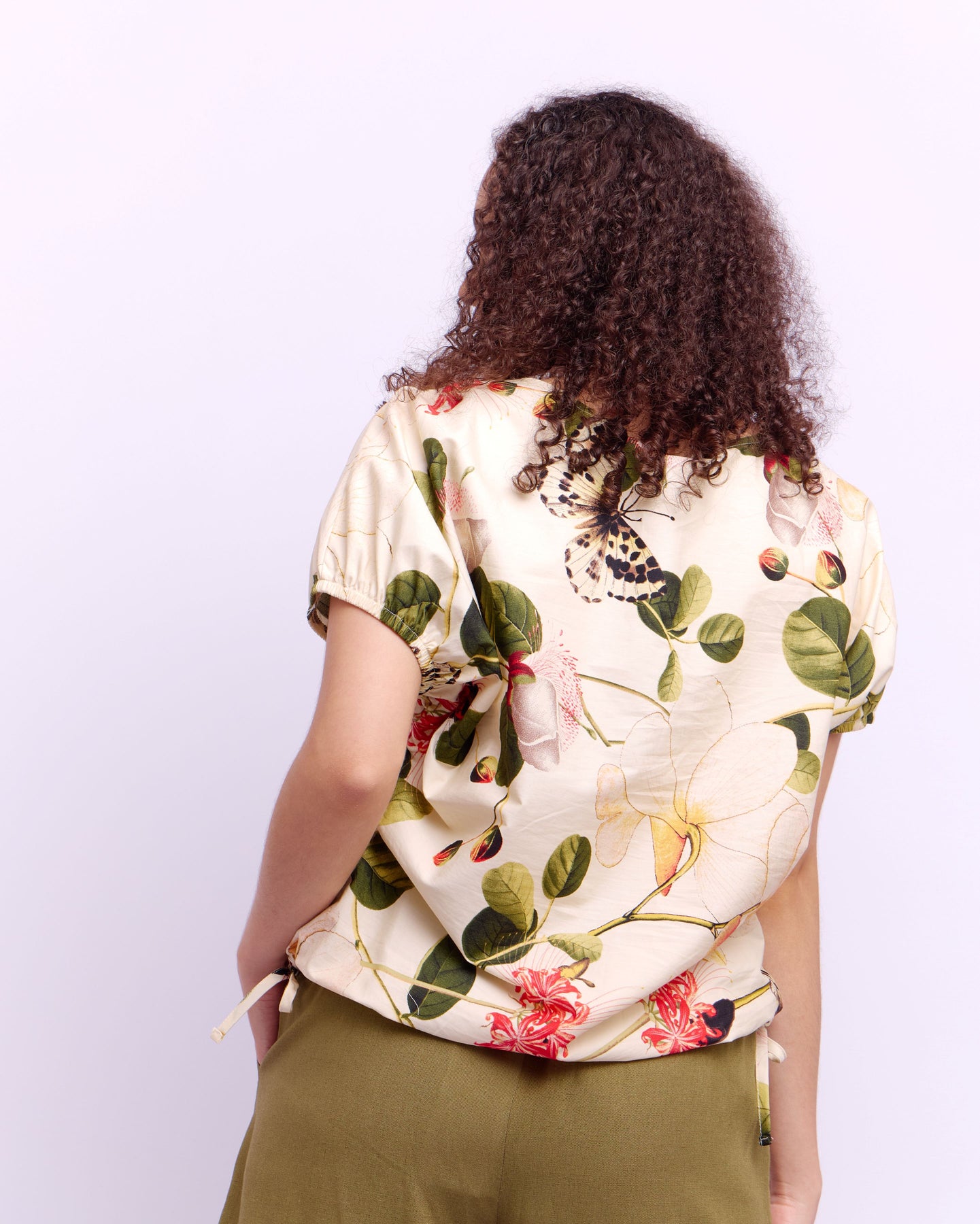 TUNNEL TIE BOXY BLOUSE - CREAM PRINT