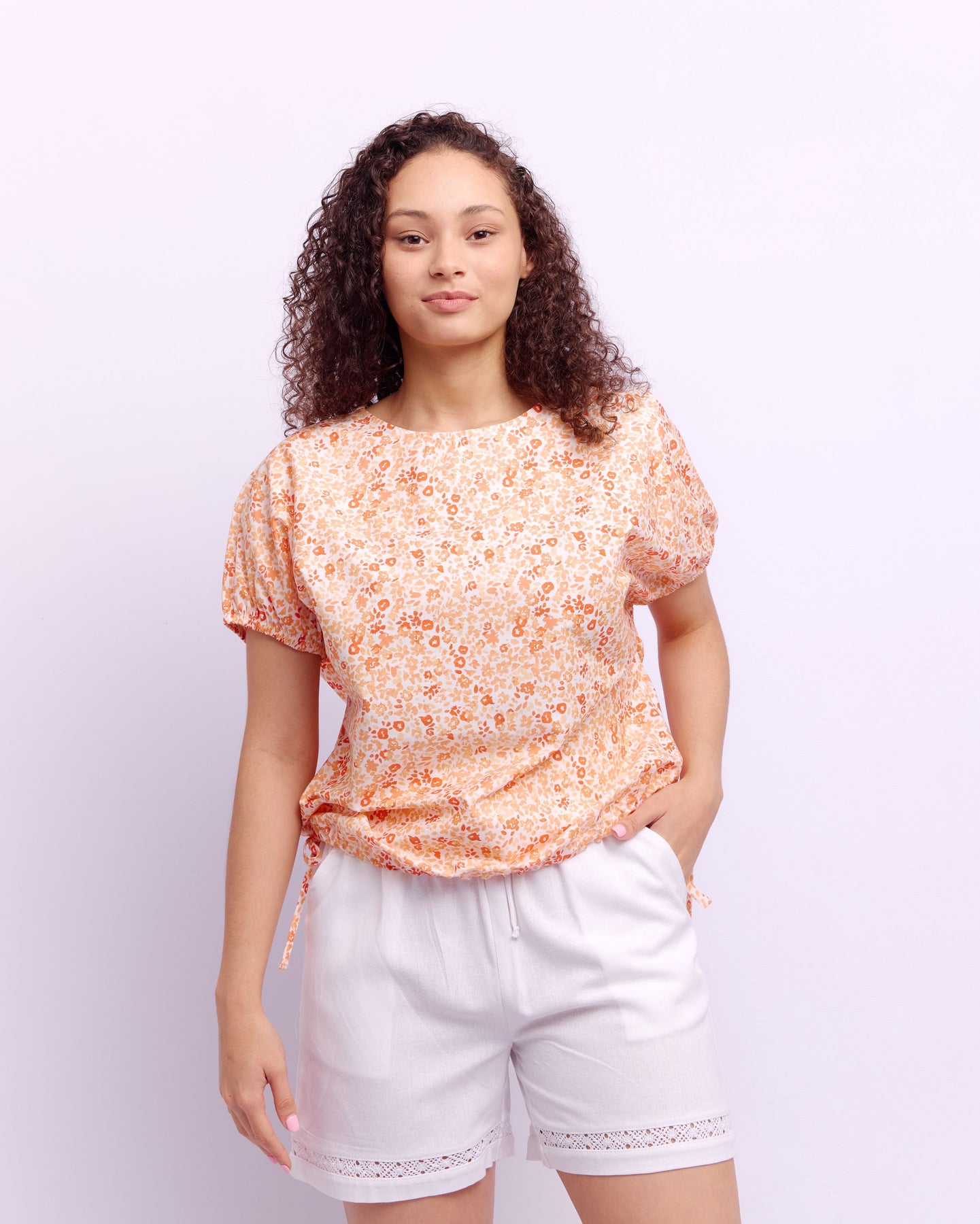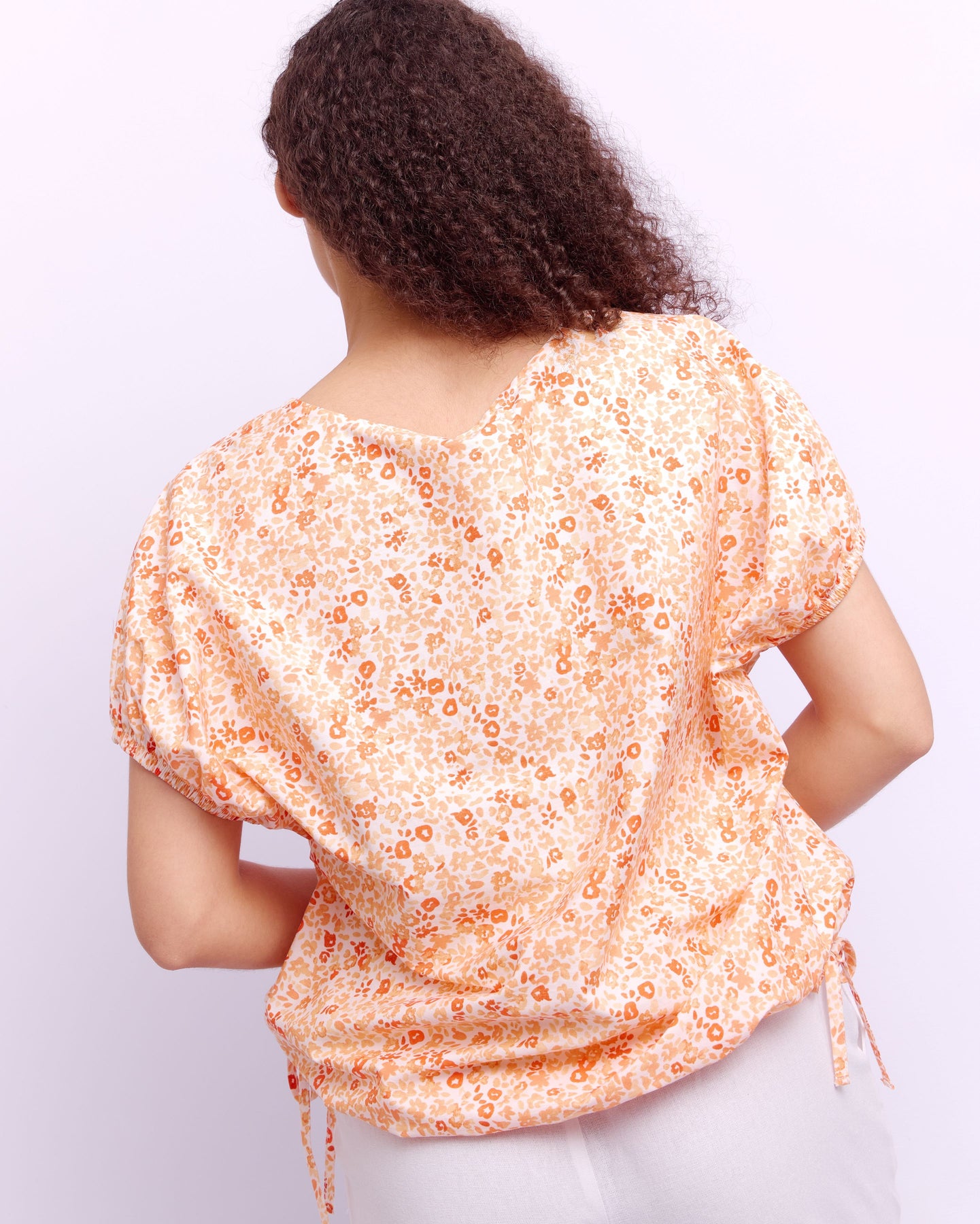 TUNNEL TIE BOXY BLOUSE - ORANGE PRINT