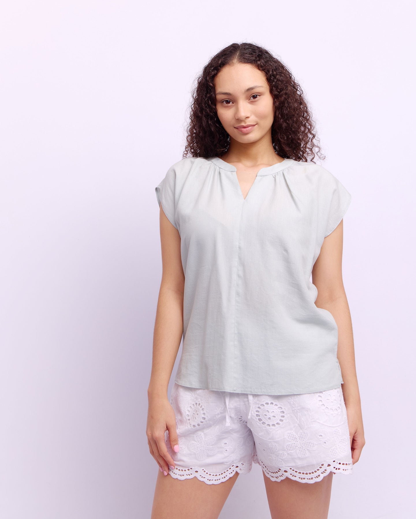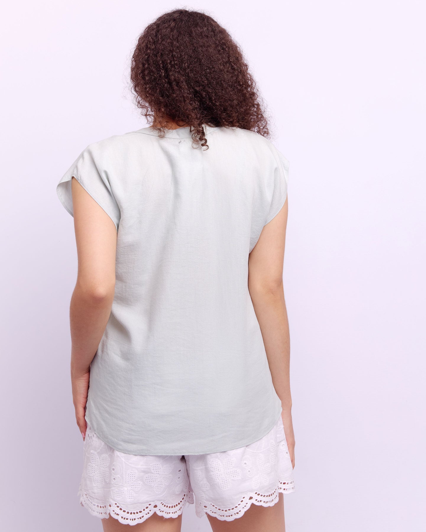V-NECK MANDARIN BLOUSE - SAGE