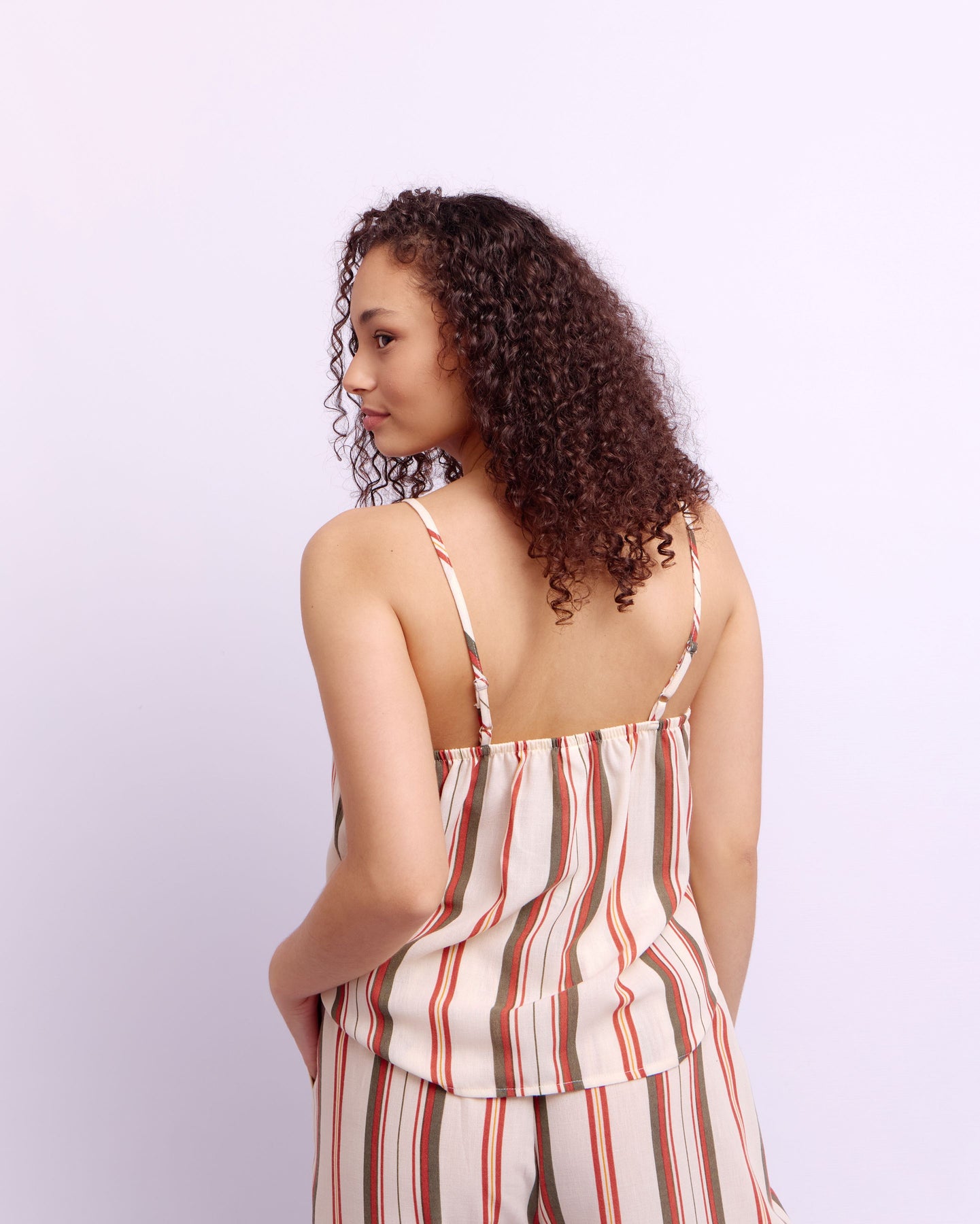 V-NECK STRAPPY LINEN TOP - STRIPE