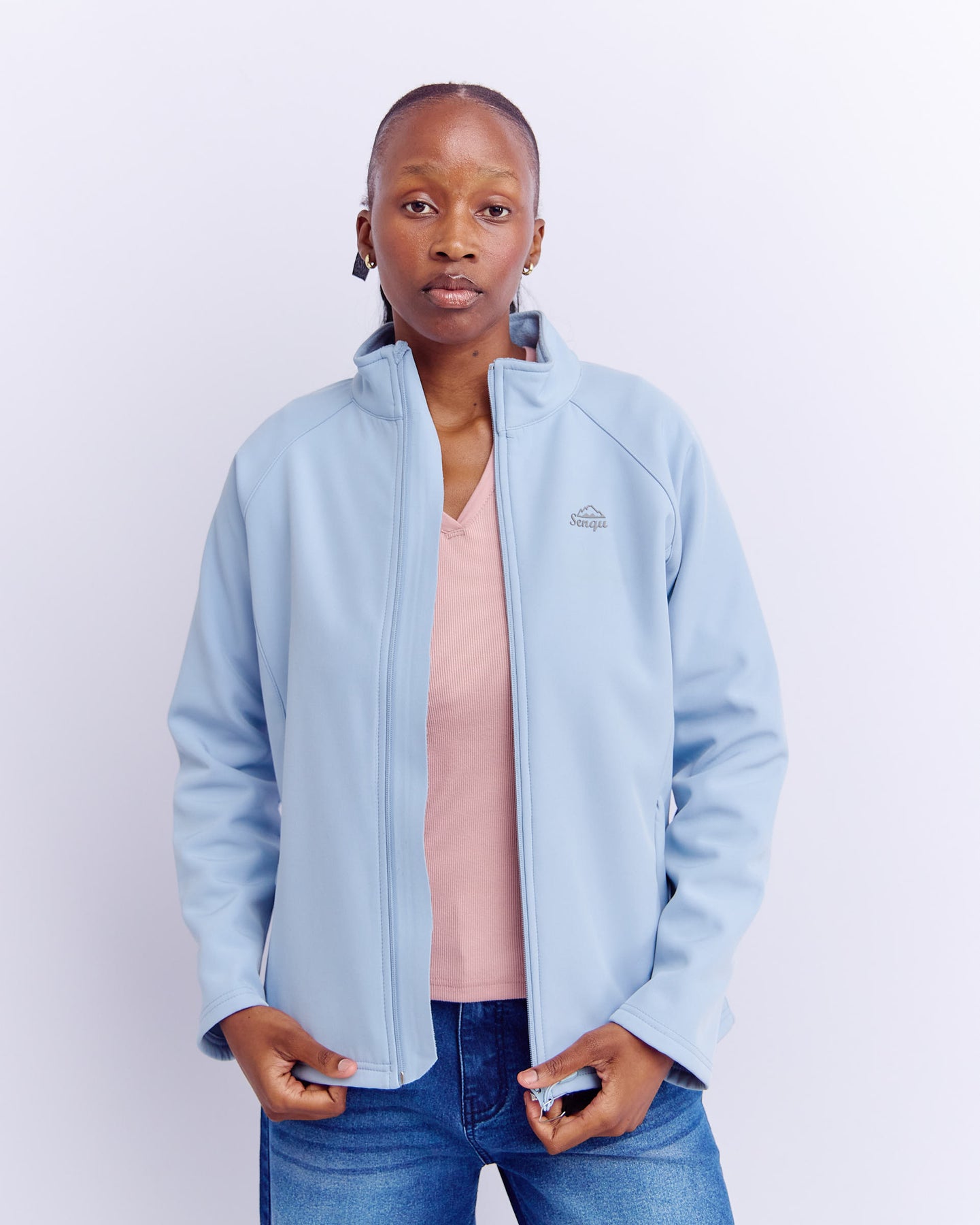 LADIES FUNNEL NECK SOFTSHELL JACKET - LIGHT BLUE