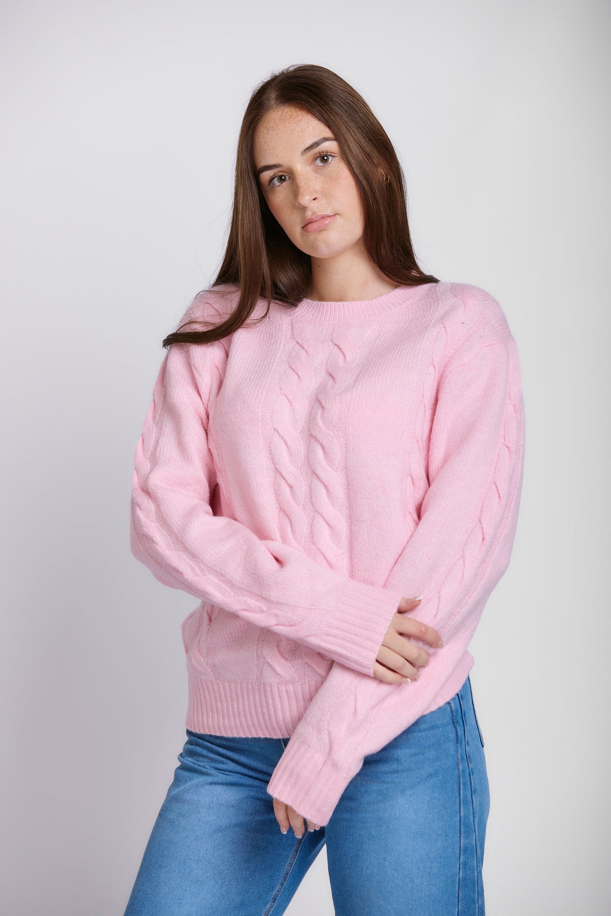 CREW NECK CABLE JERSEY - PINK