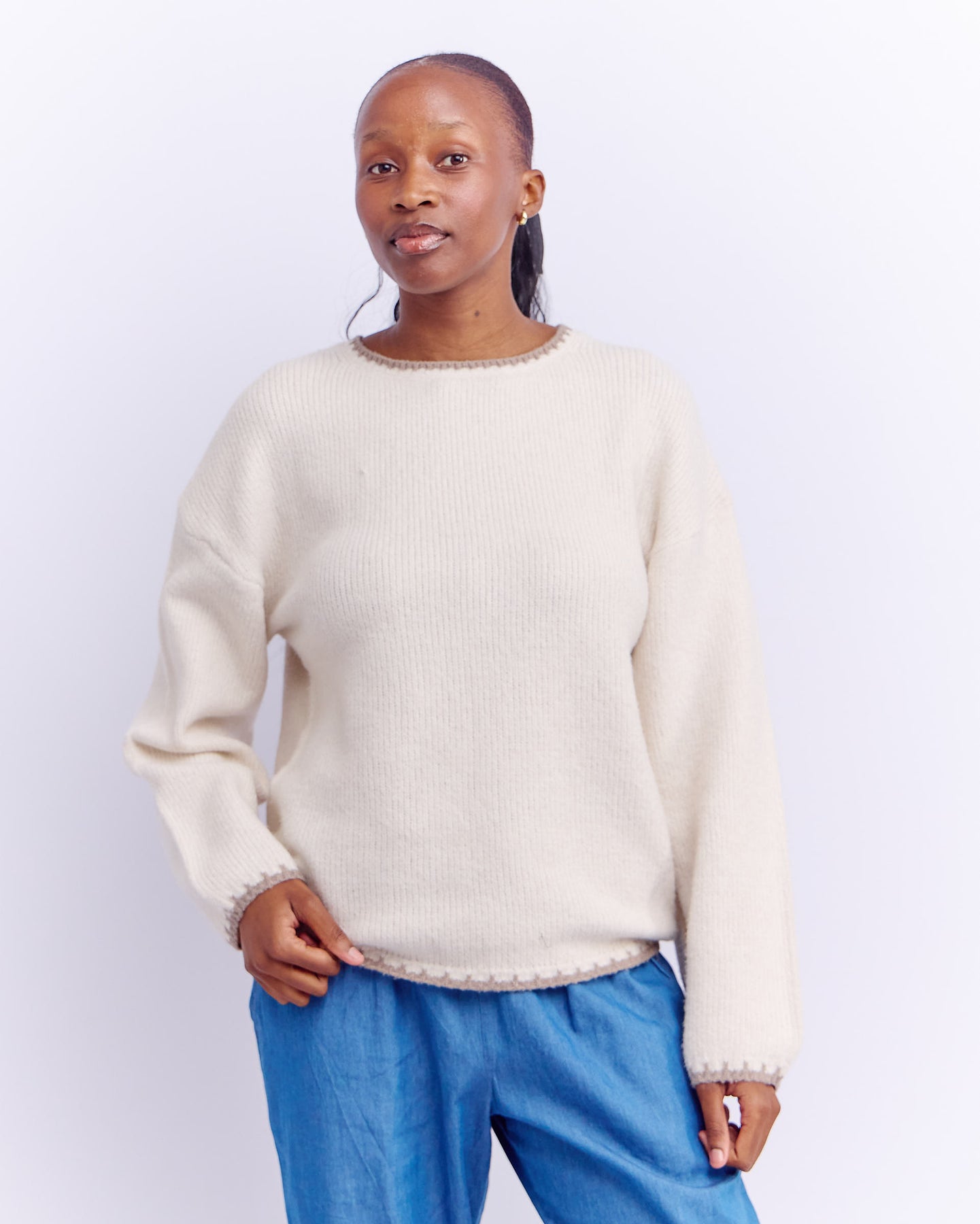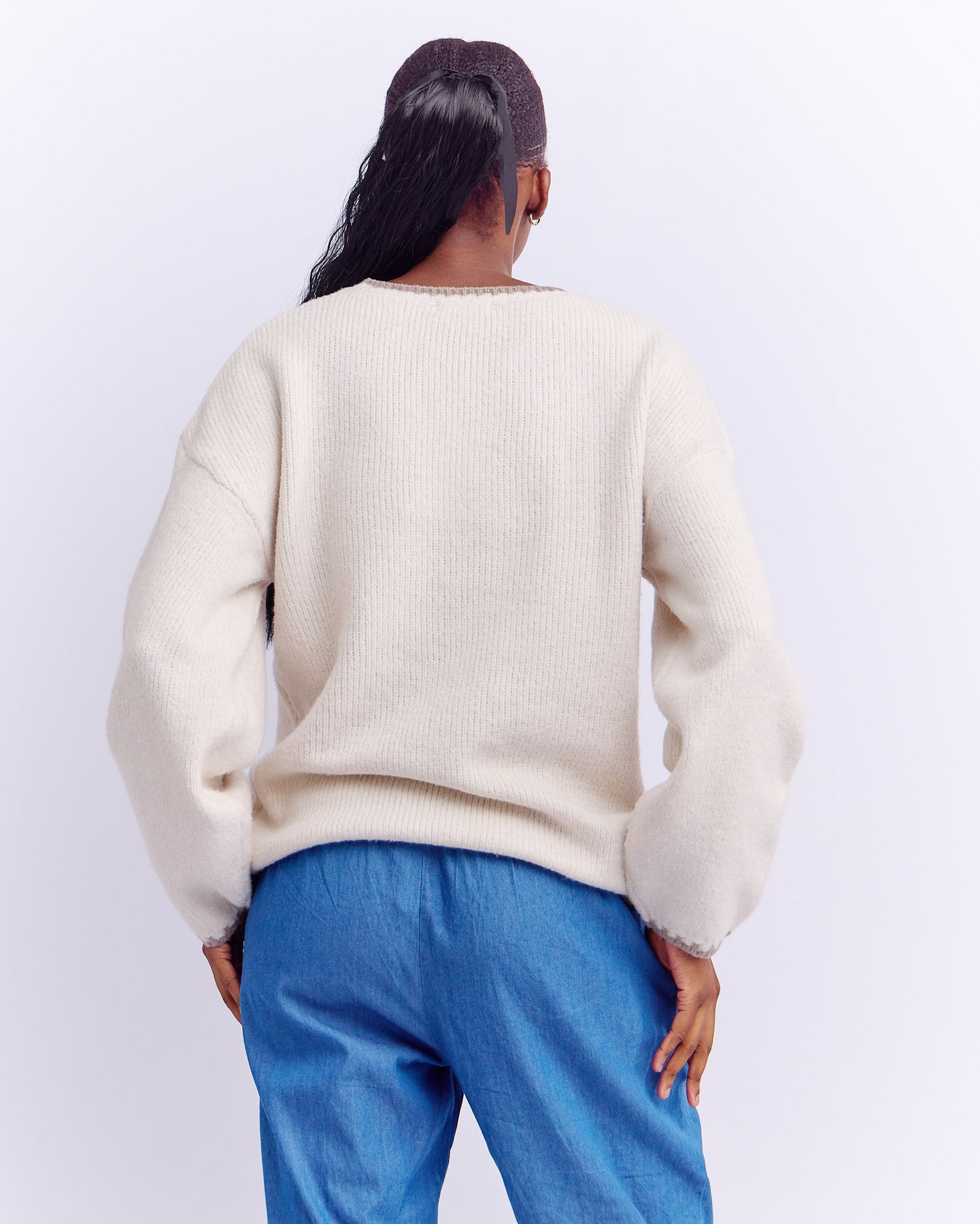 CONTRAST TIP CREW JERSEY - NATURAL/TAUPE