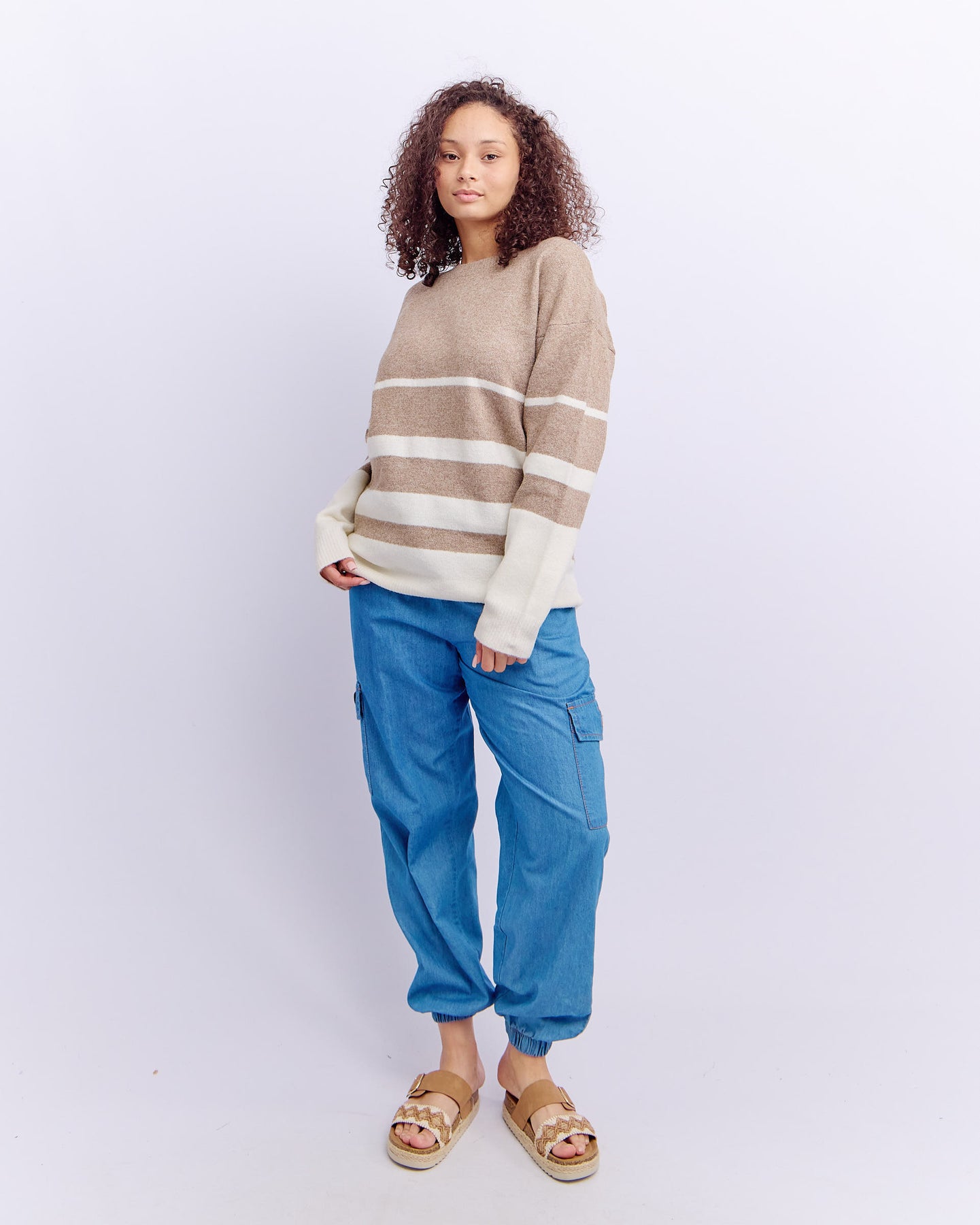 CREW NECK STRIPE JERSEY - TAPUE/NATURAL
