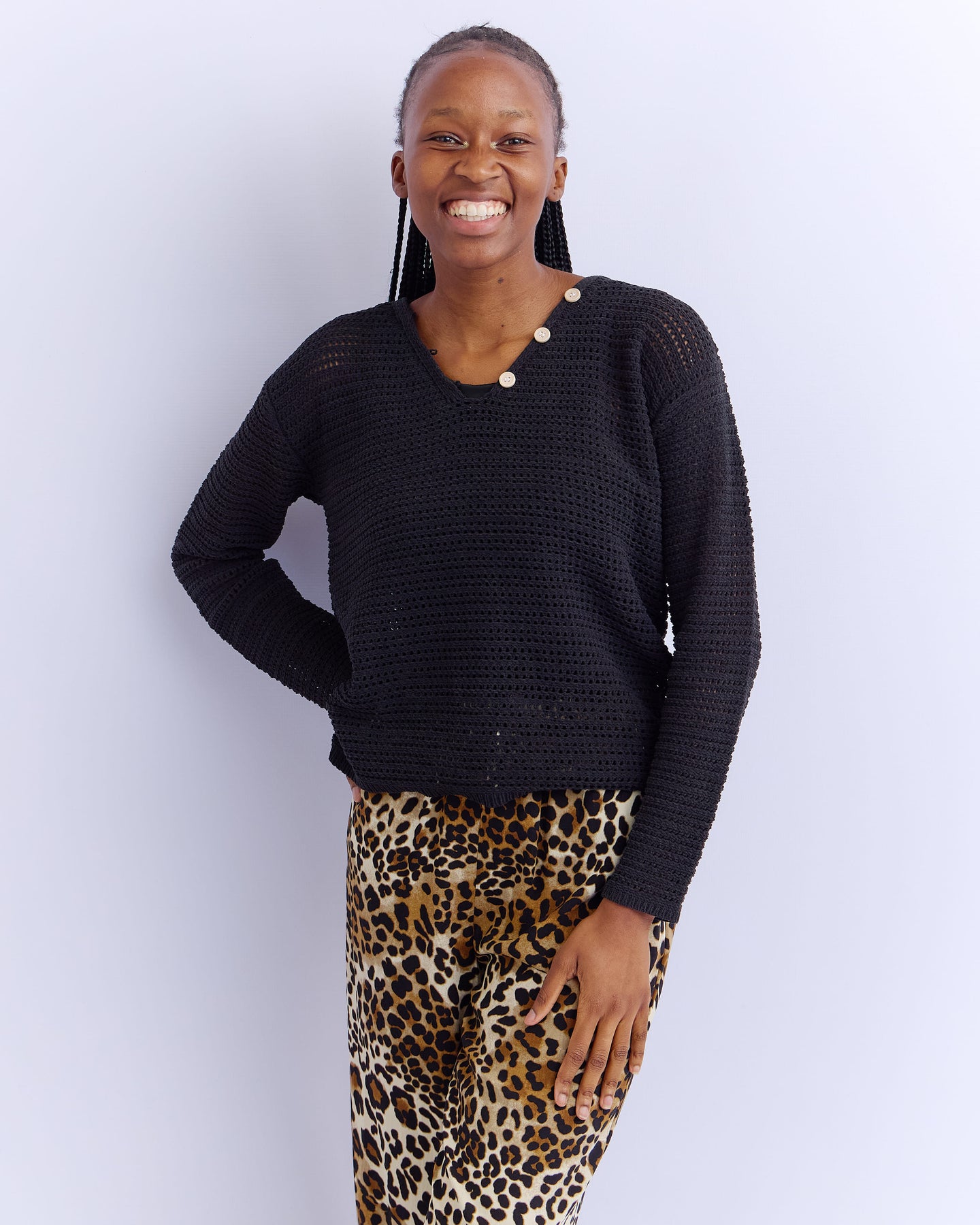 {"id":47752627650777,"title":"S \/ Black","option1":"S","option2":"Black","option3":null,"sku":"2000001187241","requires_shipping":true,"taxable":true,"featured_image":null,"available":true,"name":"CROCHET V-NECK JERSEY - BLACK - S \/ Black","public_title":"S \/ Black","options":["S","Black"],"price":19995,"weight":0,"compare_at_price":null,"inventory_management":null,"barcode":null,"requires_selling_plan":false,"selling_plan_allocations":[]}