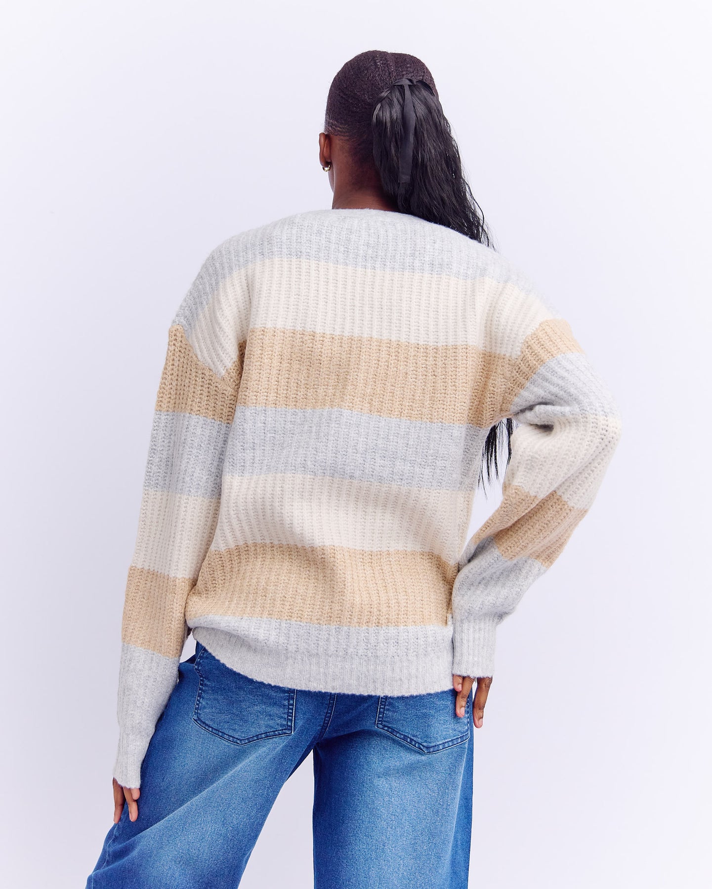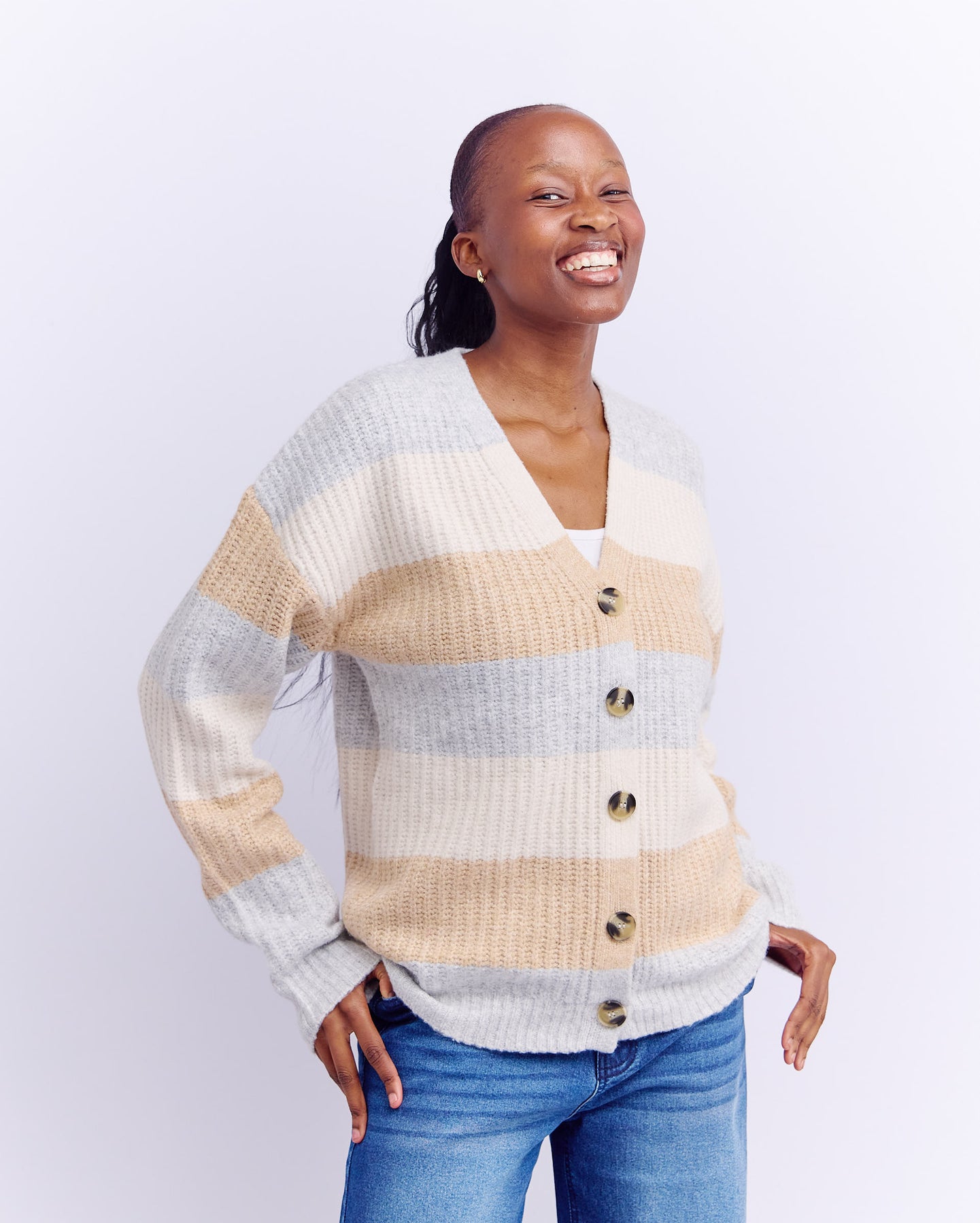 STRIPE MELANGE CARDI - NATURAL/STONE/CHARCOAL