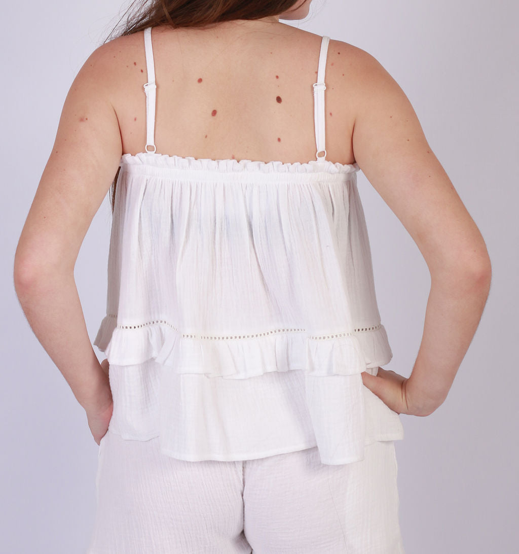 {"id":47358449287385,"title":"S \/ White","option1":"S","option2":"White","option3":null,"sku":"2000001106488","requires_shipping":true,"taxable":true,"featured_image":null,"available":true,"name":"LADDER LACE FRILL TOP - WHITE - S \/ White","public_title":"S \/ White","options":["S","White"],"price":19995,"weight":0,"compare_at_price":null,"inventory_management":null,"barcode":"","requires_selling_plan":false,"selling_plan_allocations":[]}
