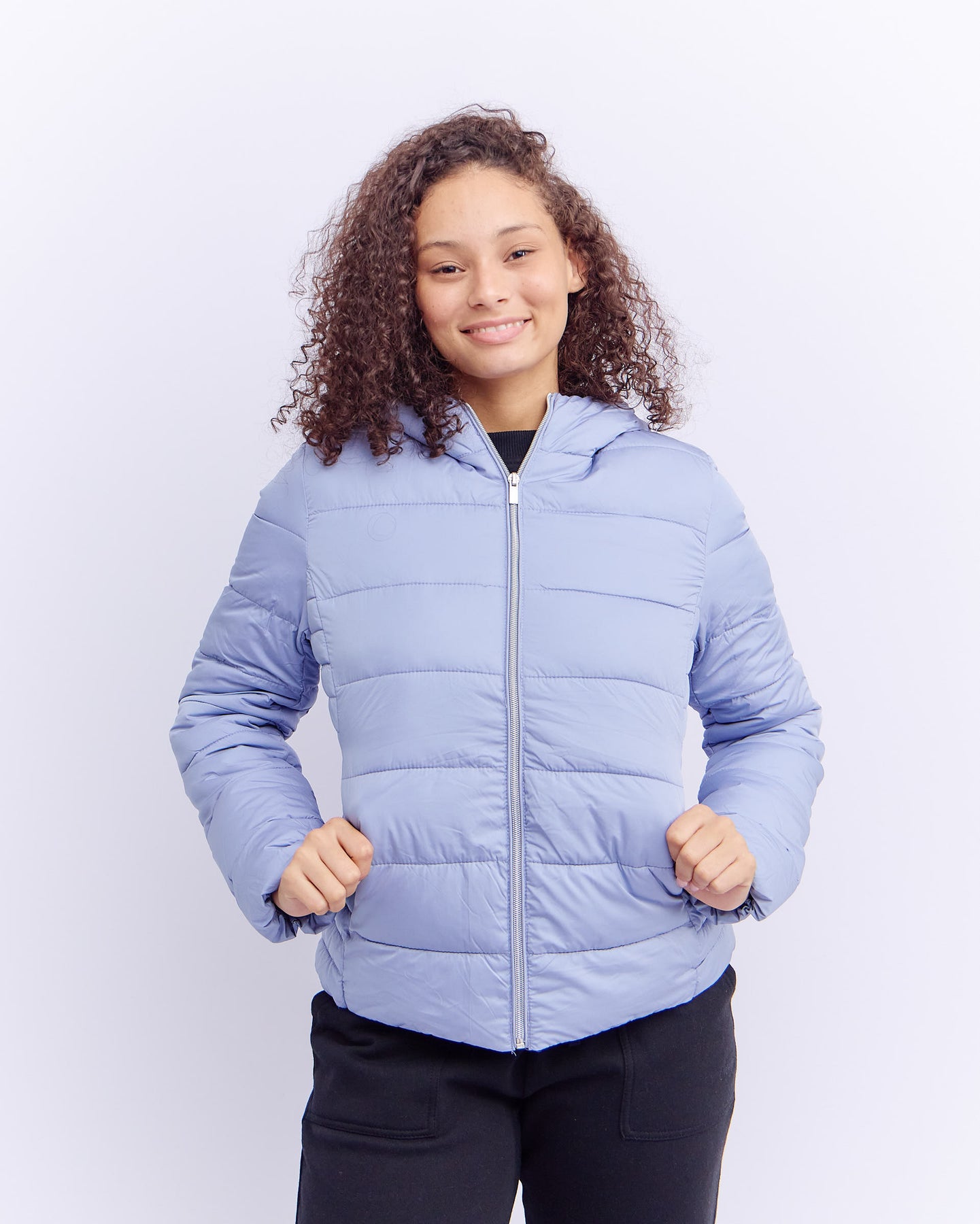 LADIES HOODED PUFFER - LIGHT BLUE