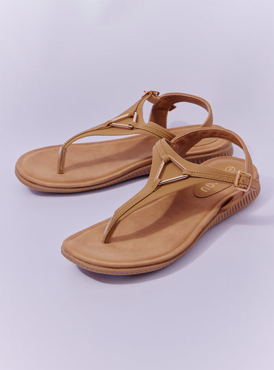 PLEATHER WITH METALIC TRIM - TAN