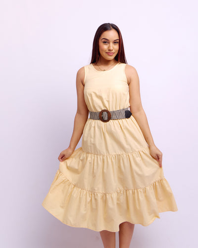 SLEEVE LESS TIERED DRESS - YELLOW