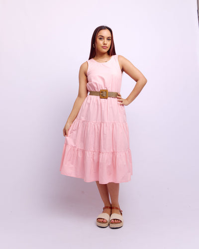 SLEEVE LESS TIERED DRESS - PINK