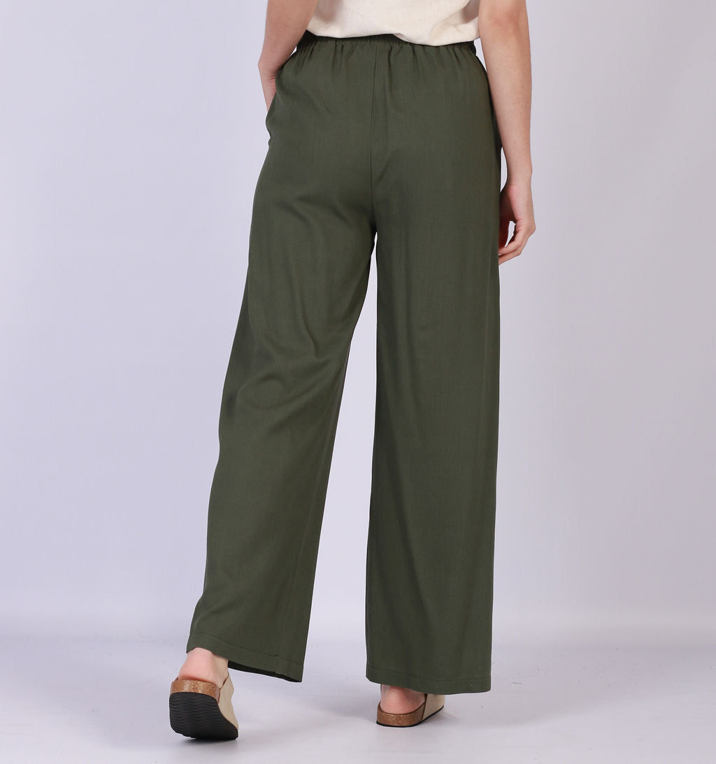 RELAXED STRAIGHT LEG LINEN PANTS - DARK MOSS