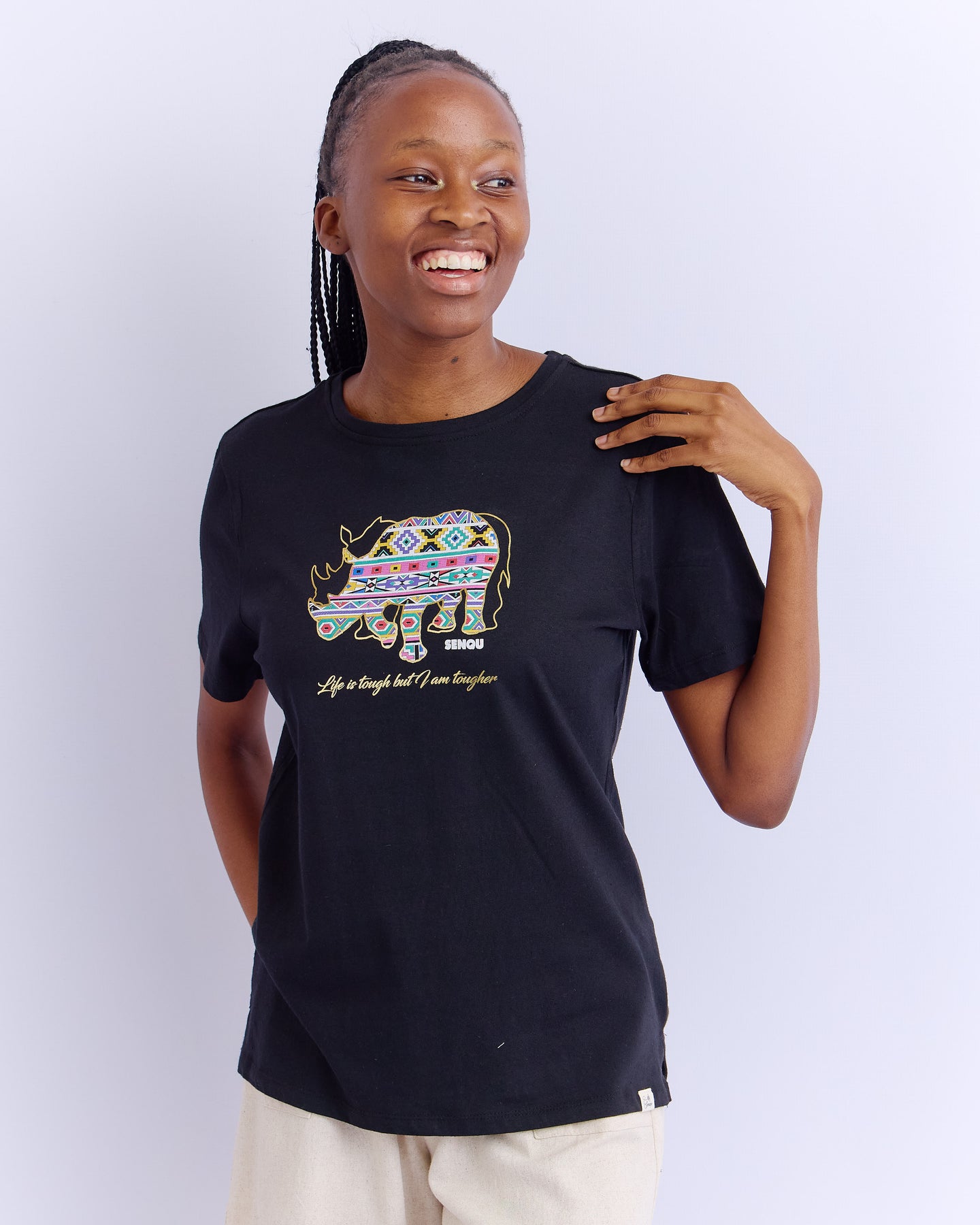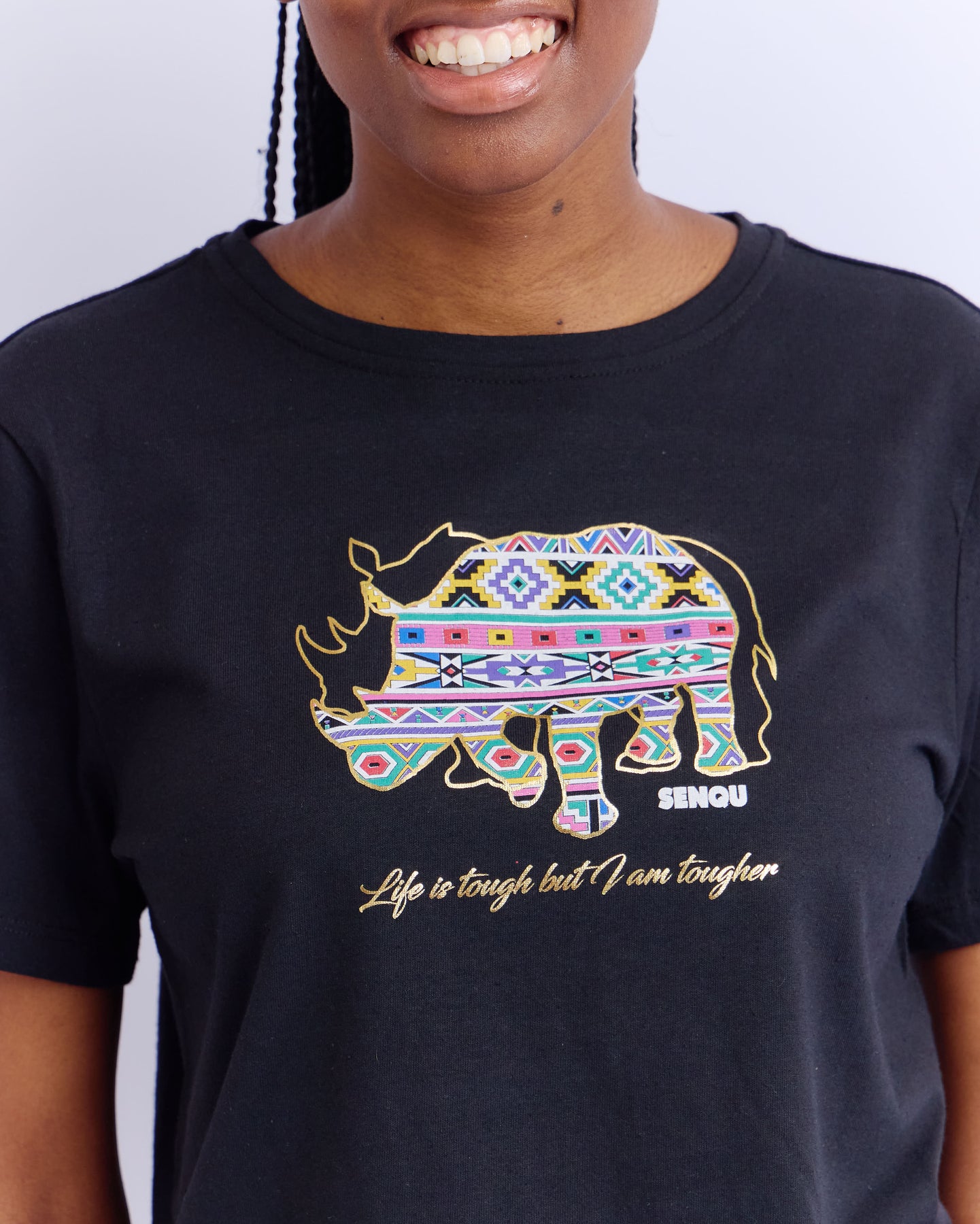 NDEBELE RHINO TEE - BLACK