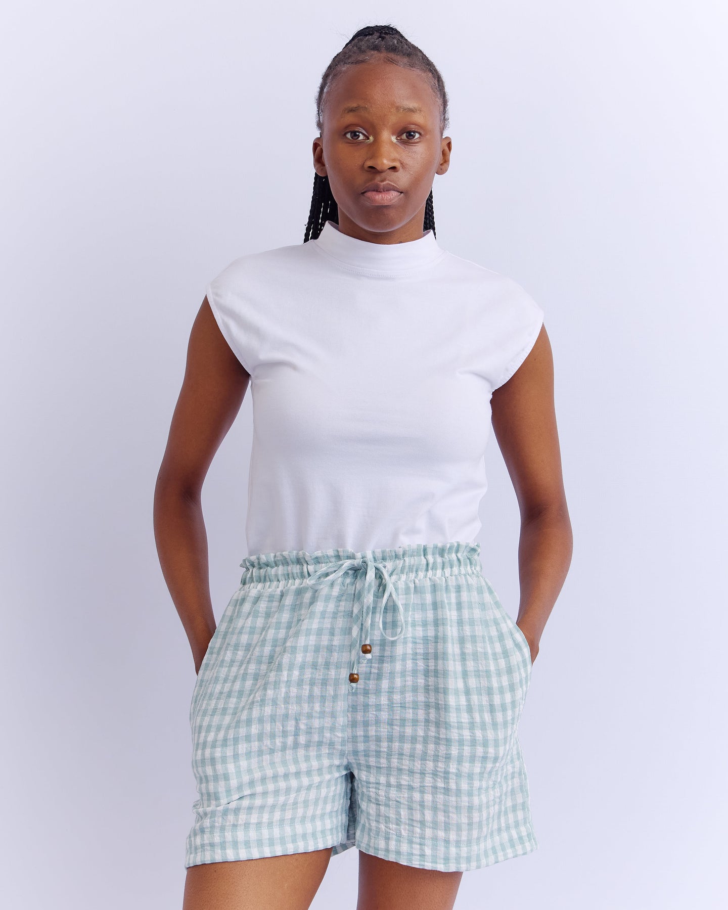 PAPERBAG GINGHAM SHORTS - SAGE/WHITE