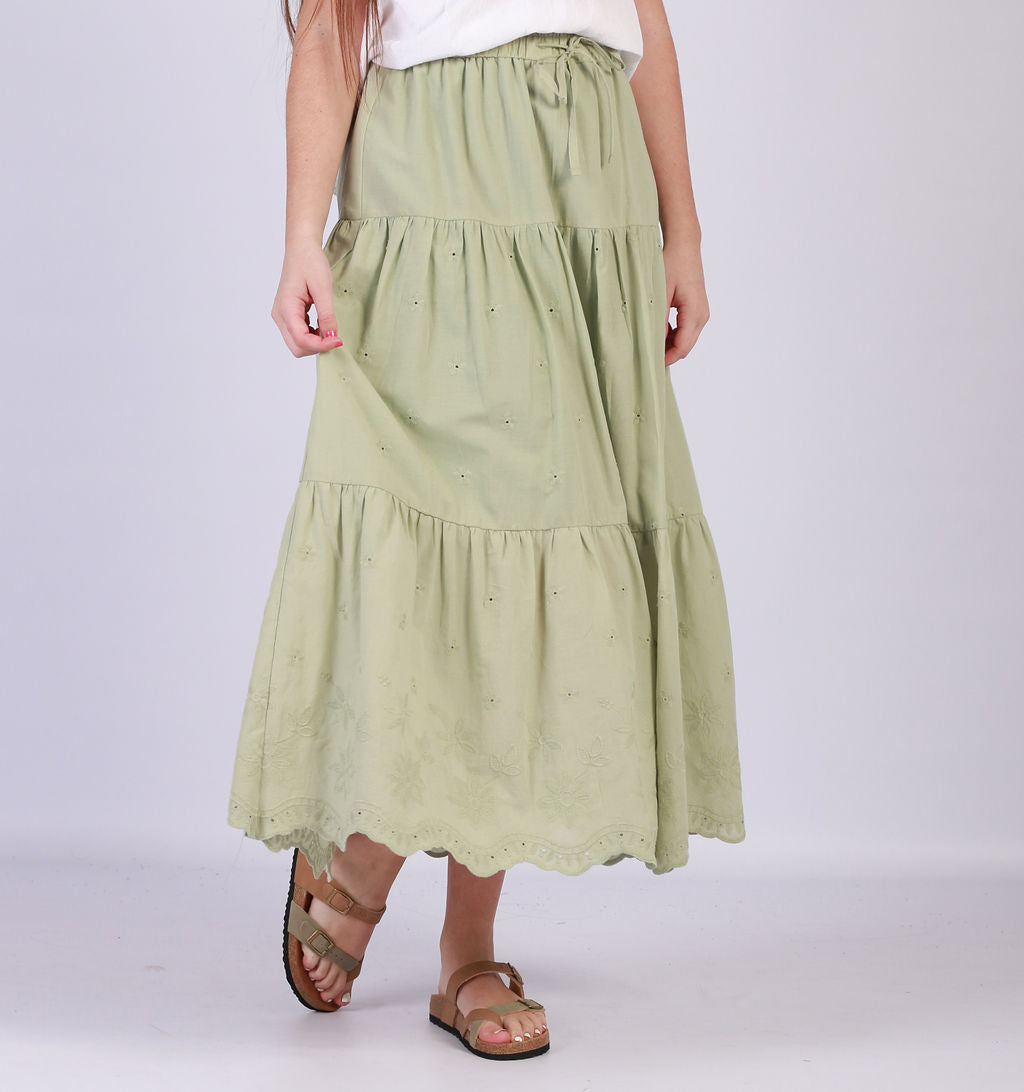 {"id":47363871211737,"title":"S \/ Sage","option1":"S","option2":"Sage","option3":null,"sku":"2000001101094","requires_shipping":true,"taxable":true,"featured_image":null,"available":true,"name":"TIERED ANGLAISE SKIRT - SAGE - S \/ Sage","public_title":"S \/ Sage","options":["S","Sage"],"price":29995,"weight":0,"compare_at_price":null,"inventory_management":null,"barcode":"","requires_selling_plan":false,"selling_plan_allocations":[]}