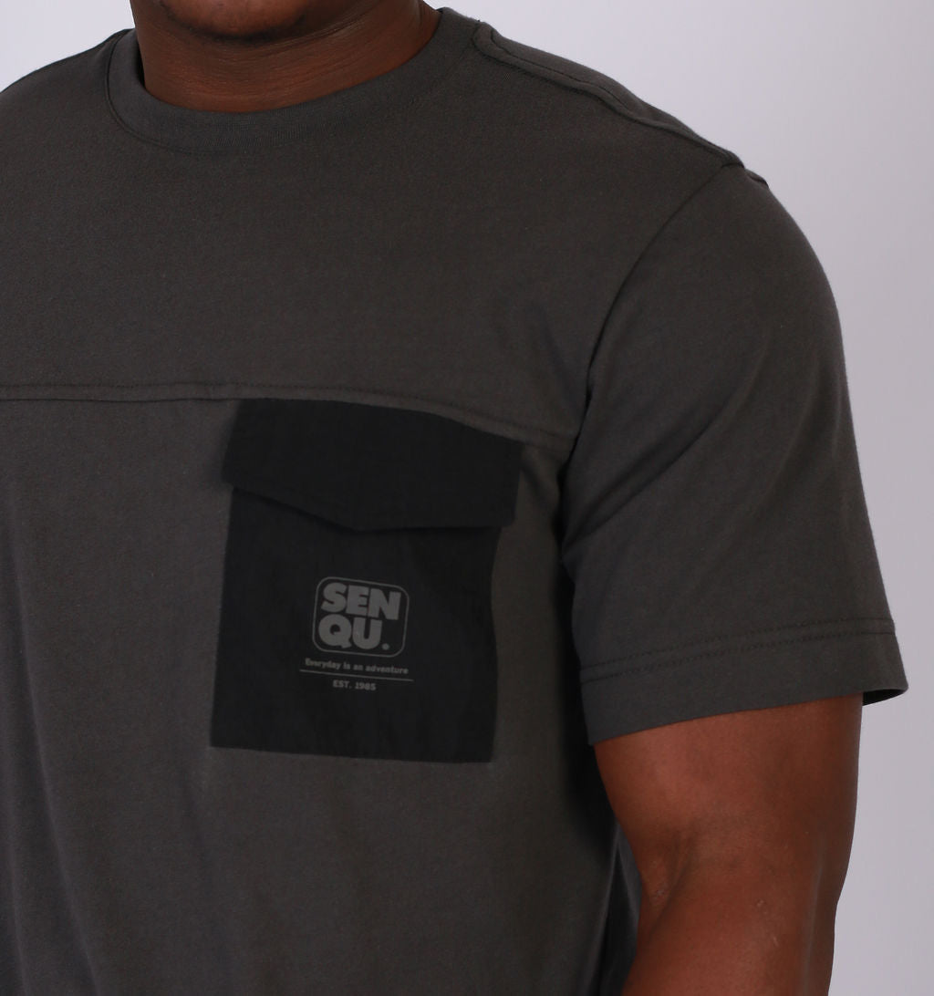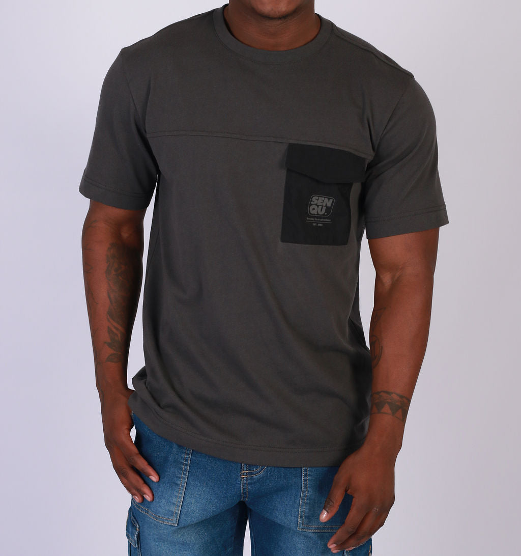 SPLIT FRONT POCKET TEE - GUNMETAL