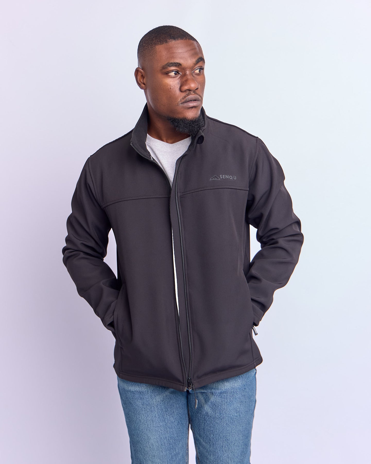 MENS FUNNEL NECK SOFTSHELL JACKET - BLACK
