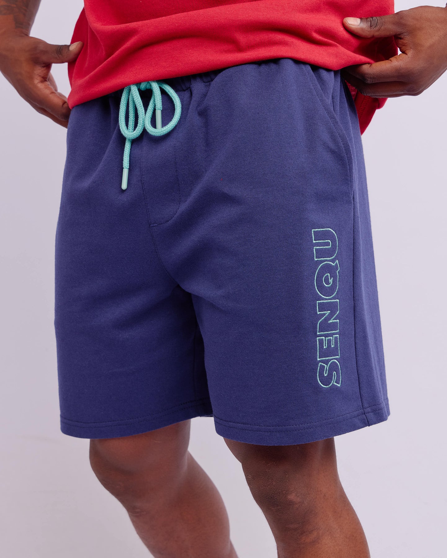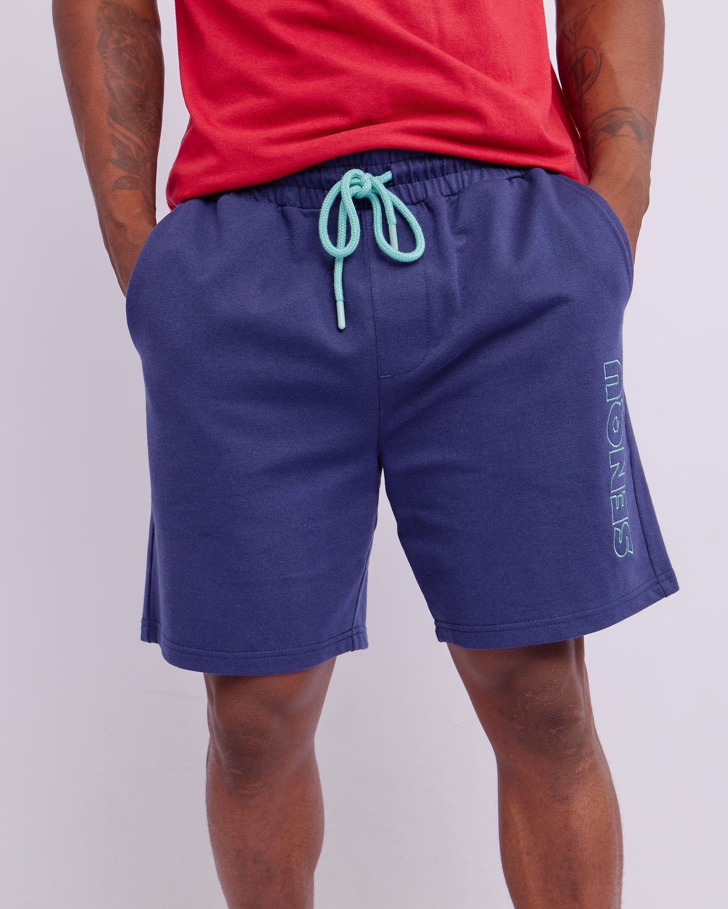 CONTRAST SIDE EMBROIDERY SHORTS - NAVY