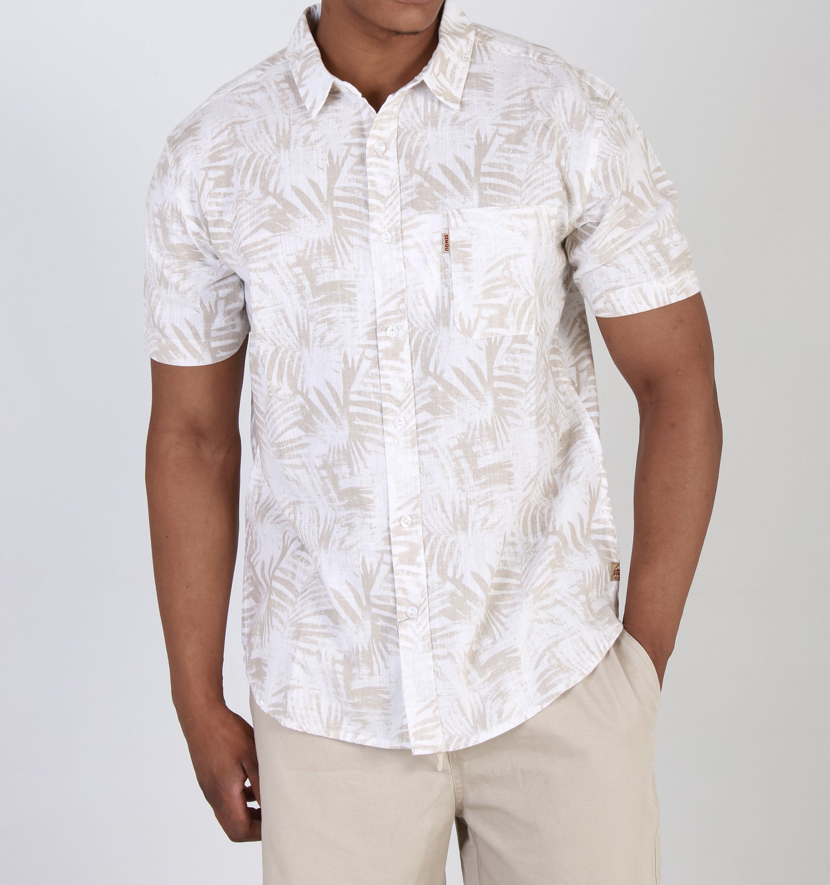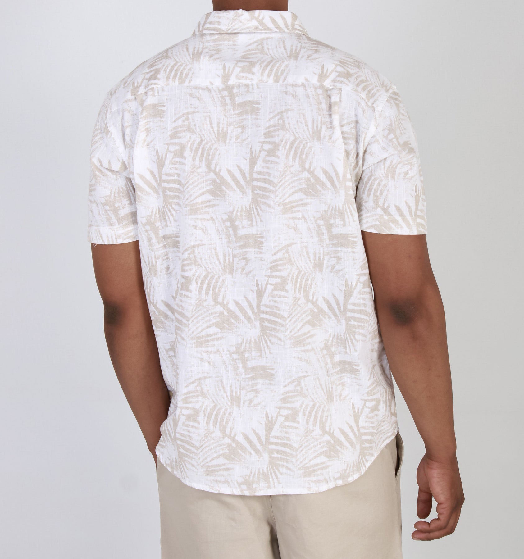 MENS PRINTED COLLAR SHIRT - TAUPE LEAVES