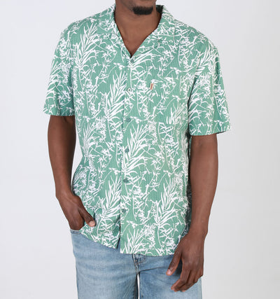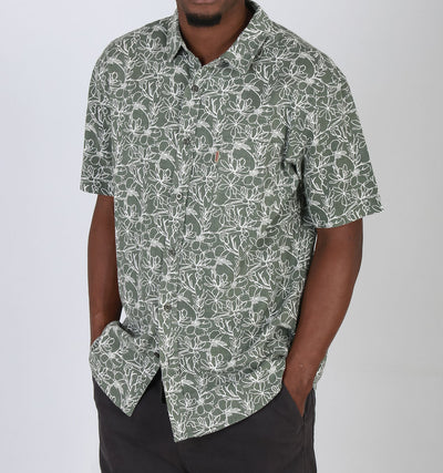 MENS PRINTED COLLAR SHIRT - FATIGUE PALMS