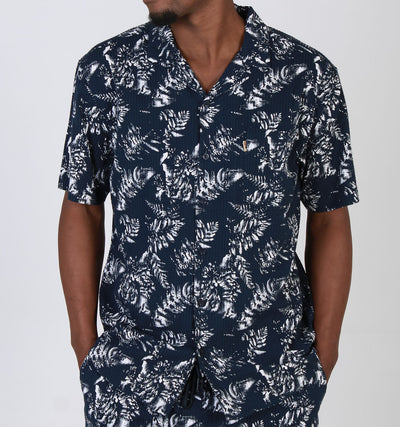 SEERSUCKER REVERE COLLAR PRINTED SHIRT - NAVY FREN