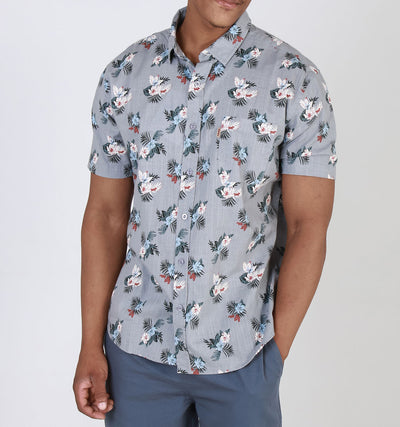 MENS PRINTED COLLAR SHIRT - GREY FLORAL