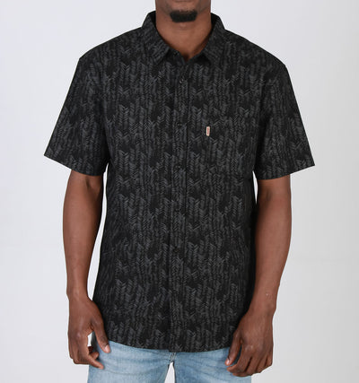 MENS PRINTED COLLAR SHIRT - GREY HATCH