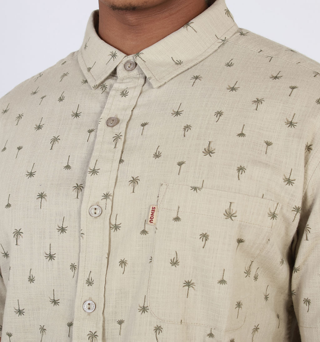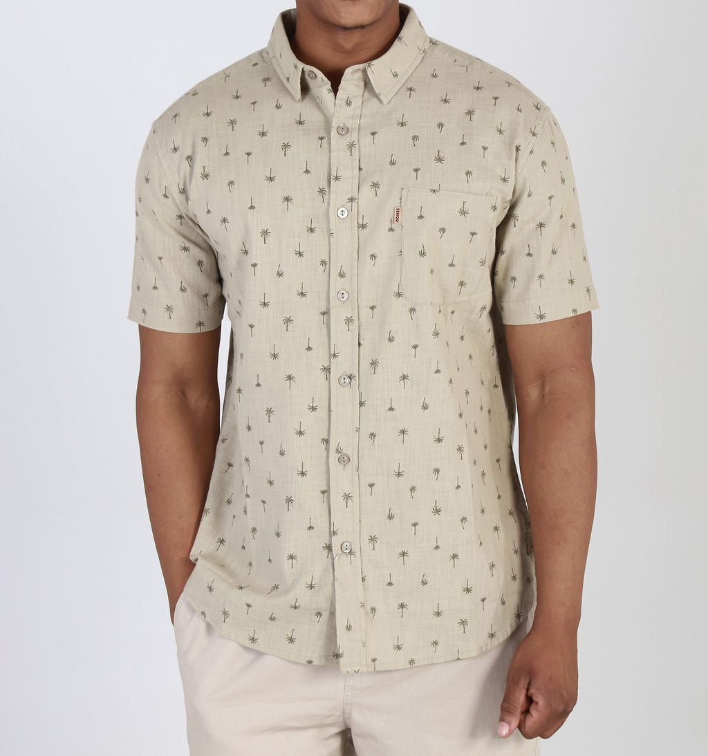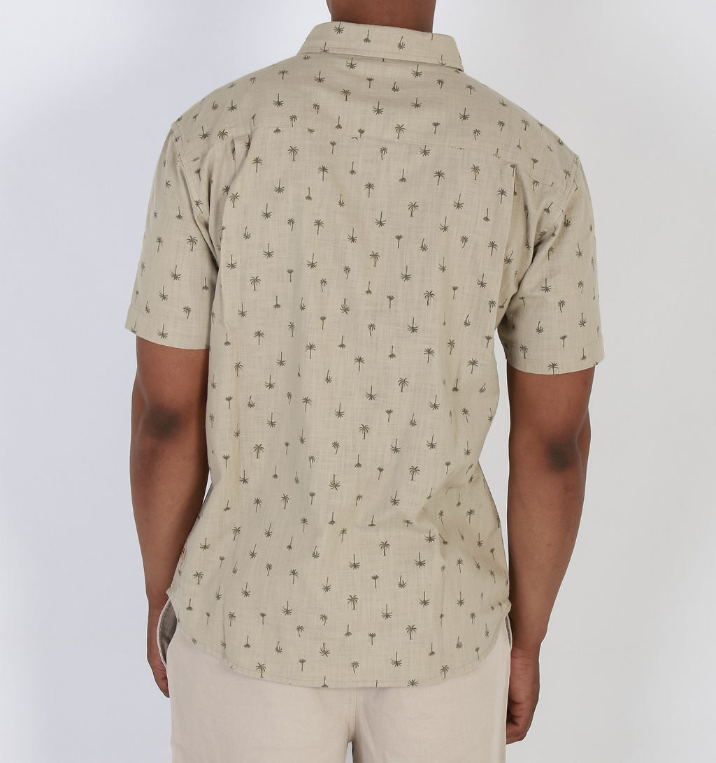 MENS PRINTED COLLAR SHIRT - FATIGUE PALMS