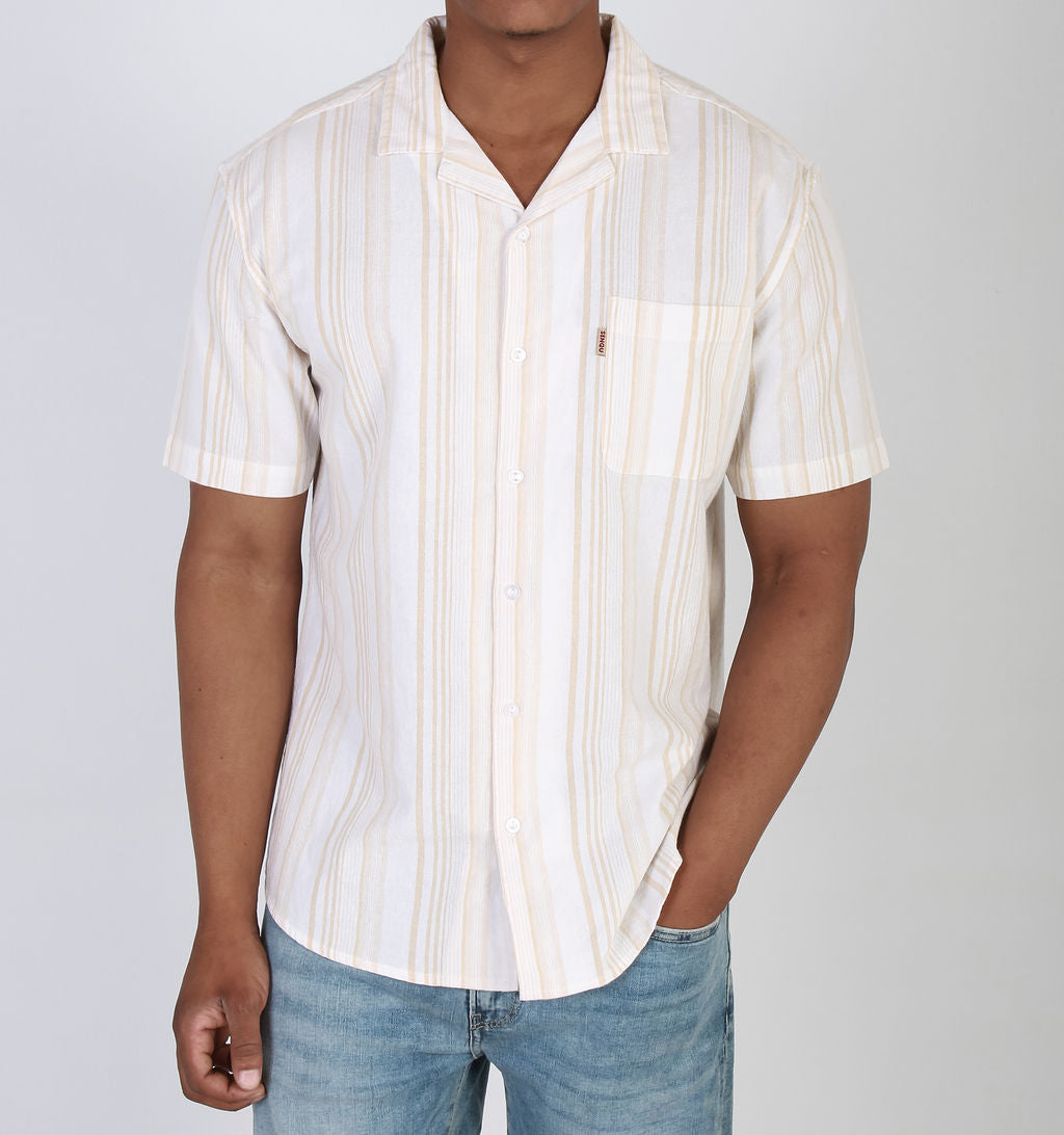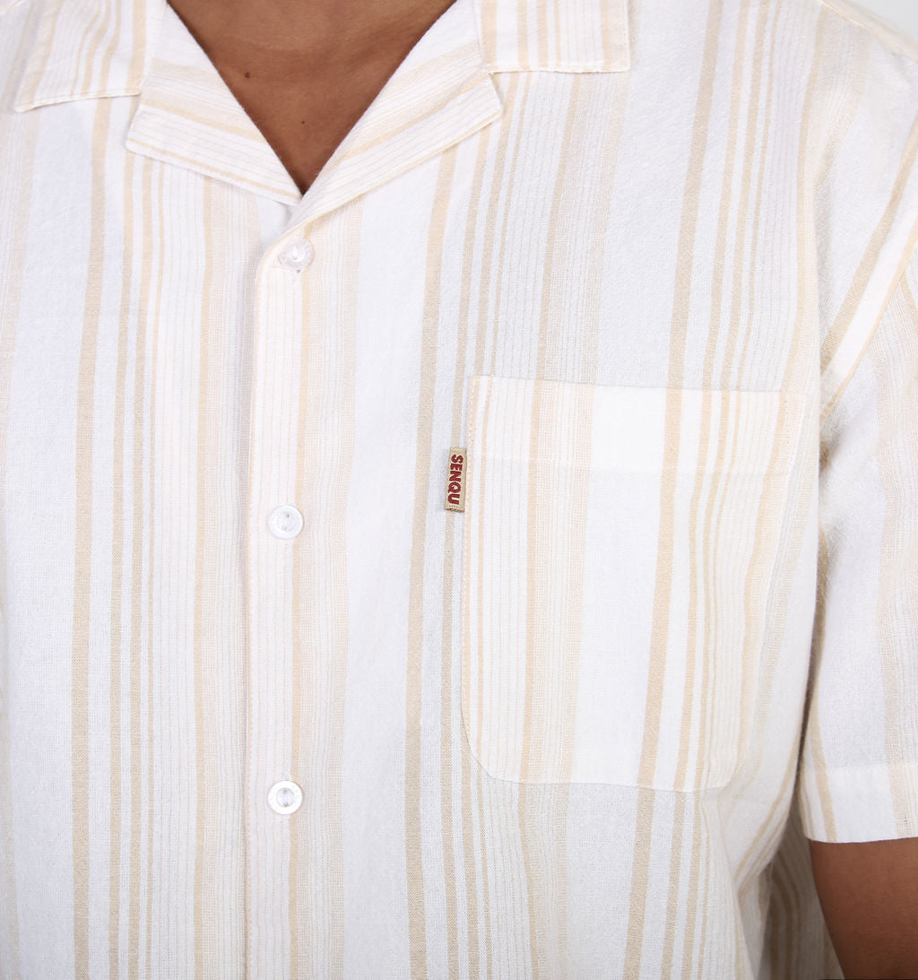 REVERE COTTON STRIPE SHIRT - TAUPE/WHITE