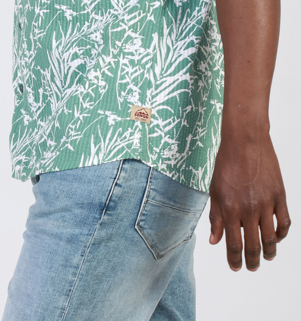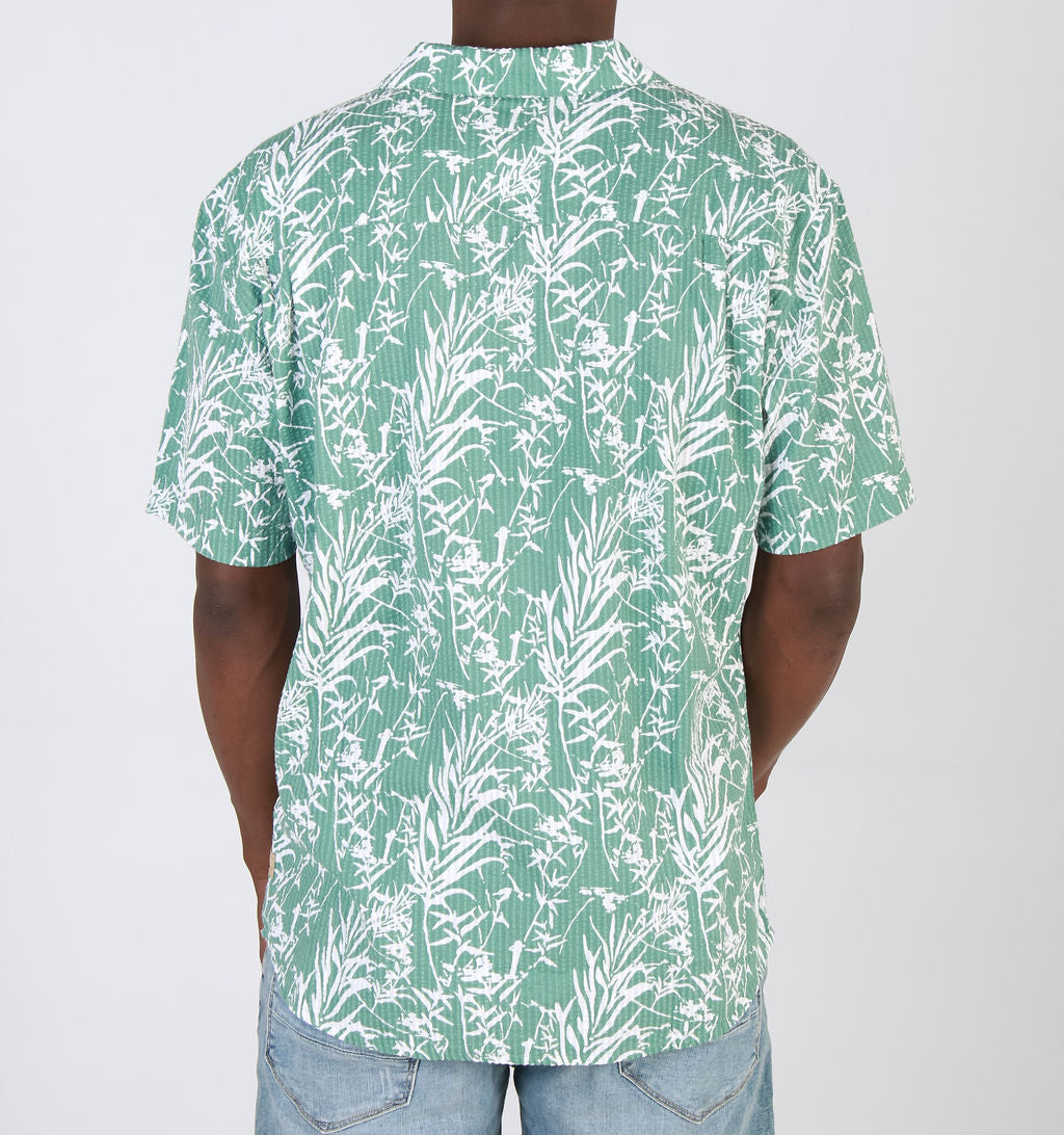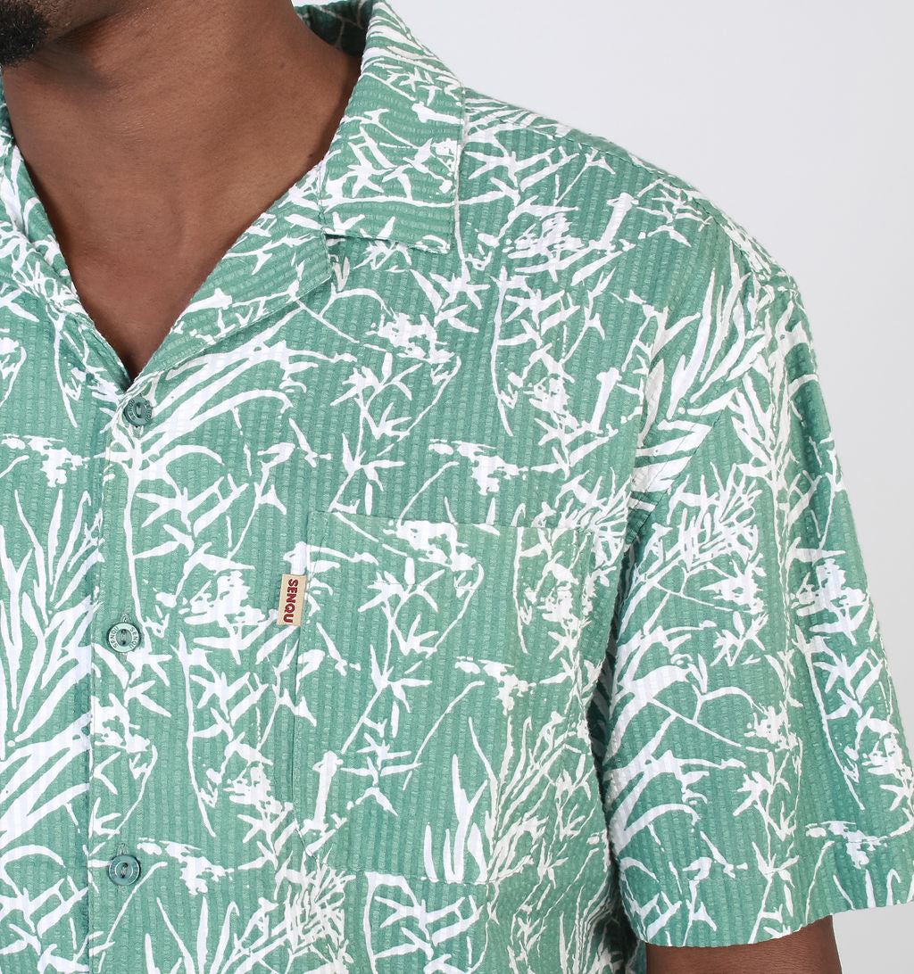 SEERSUCKER REVERE COLLAR PRINTED SHIRT - BAMBOO LEAVES