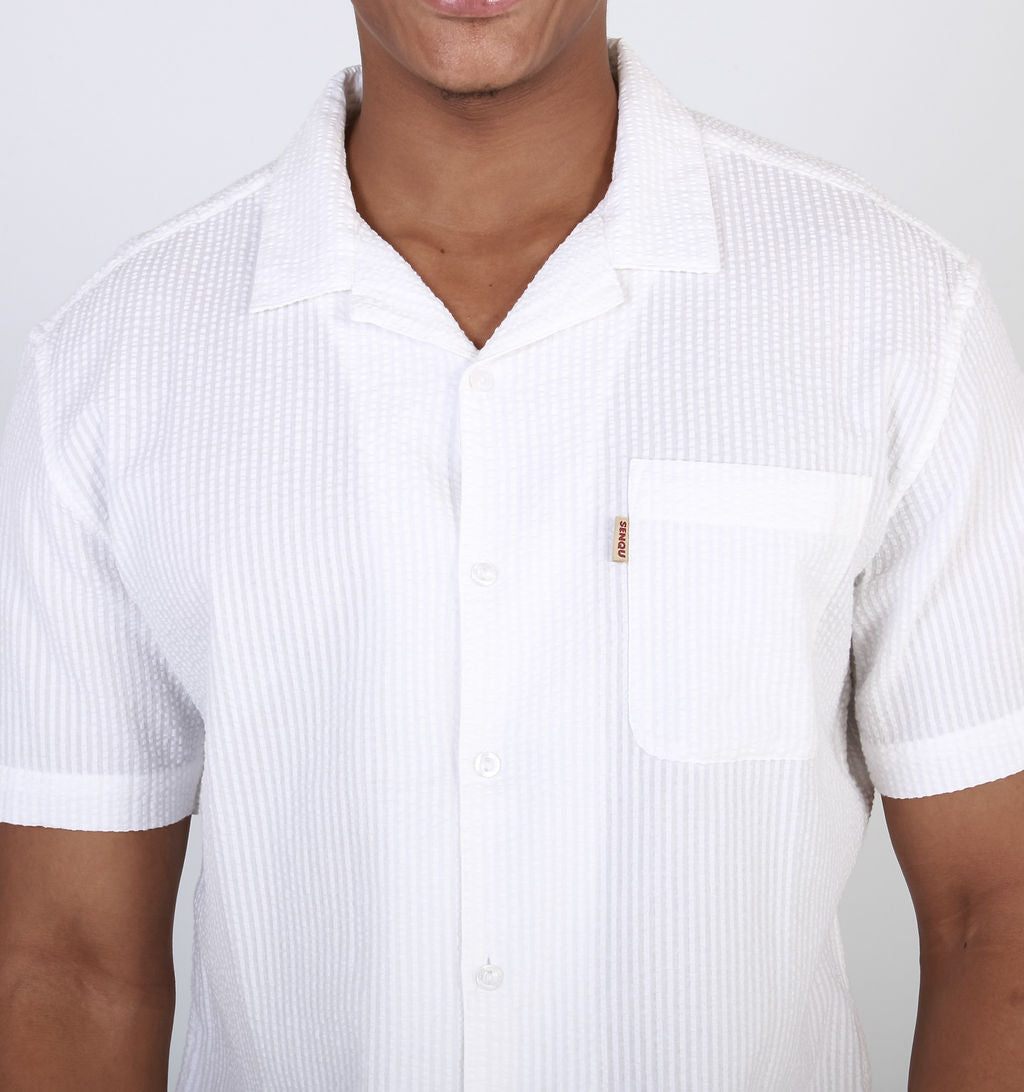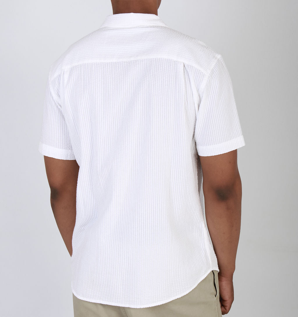 SEERSUCKER REVERE COLLAR SHIRT - WHITE