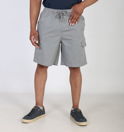 CRACKER POPLIN ELASTICATED CARGO SHORTS - LIGHT GREY