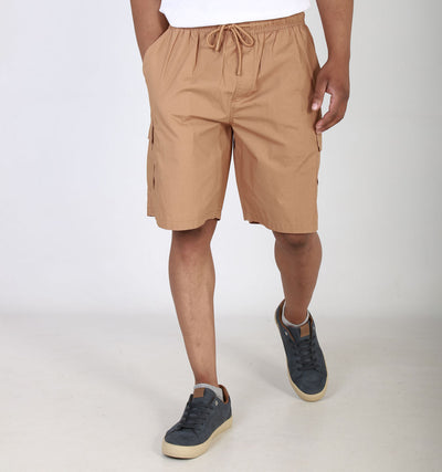 CRACKER POPLIN ELASTICATED CARGO SHORTS - TOBACCO