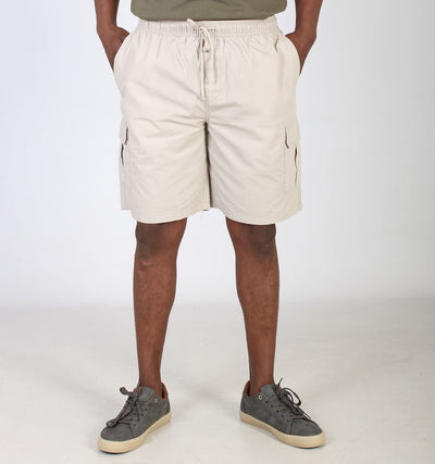 CRACKER POPLIN ELASTICATED CARGO SHORTS- DARK STONE